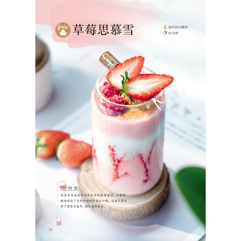 在线试读: 推荐序 初识鱼菲,是在8年前的一个美食活动上。他给我的第一感觉,真是个阳光帅气的男孩!他烹饪食物认真、严谨,做出的创意美食又让人惊喜连连。后来由于彼此工作繁忙,我们的交流更多存在于微信朋友圈中。不过从他更新的信息中,我知道他在美食之路上不断地成长、进取,通过自己的努力为美食行业的发展贡献力量,近年更是连续编写出版了指导新手入门的基础美食书,我由衷地为他感到高兴。说到饮品,我与饮品结缘于2001年,那一年我代表中国前往哥本哈根参赛,获得首个世界花式调酒冠军。11年前,我又开始正式从事饮品研发的工作。我一直在努力搭建咖啡、酒以及茶完美融合的桥梁。 在我看来,一杯出色的饮品是“色”“香”“味”俱全的美味艺术,再加上宜人的温度、舒心的音乐,当这些元素连接在一起,就能充分调动消费者从视觉、味觉、嗅觉、触觉、听觉这五感去品尝一杯饮品,进而获得非常美妙的体验。所以每当接触到全新的食材、器材时,我会不由自主地思考它可能呈现的风味,怎样搭配与呈现,才能创作出一杯让人久久不能忘怀的饮品……书中将与大家分享众多潮流饮品的制作方法,包括鸡尾酒、奶昔、思慕雪等。虽然是家常简易做法,却处处体现着鱼菲的巧思与用心。从原料选材到操作技巧,详细的步骤,可以让大家在开心阅读的同时,轻松上手,为自己做一杯赏心悦目的饮品。 世界花式调酒大赛冠军、茶、酒与咖啡跨界融合倡导者 欧阳智安/2020年8月 自序 人的一生,因各种琐事而产生喜怒哀乐。在我看来,融贯四季的饮品是调整情绪的良方——予人欢乐,去其悲伤。饮品,也寄托了家人彼此的牵挂:每当顶着盛夏的烈日回家,母亲总会给我准备好一碗红豆刨冰;而凛凛冬日,亦能喝上父亲煮好的温润可口的桂圆红枣茶。 饮品,早已不仅是为了消暑解渴,或冷或热,或清冽或浓醇,或馥郁或淡泊……万般口味,凭君所好。从我有记忆开始,爷爷在饭桌上就时常用筷子蘸着自家酿的葡萄酒,让我用舌尖舔一下,以试胆量。或许自小闻惯了酒香,现在烹煮烘焙爱用酒提味之外,每年盛夏的水果采收季也会自酿几瓶果酒——青梅、杨梅、荔枝、枇杷、蜜桃……这些“时间手酿”,既能当年浅尝,亦可待陈年小酌。果香甘甜,不同年份馥郁的酒香,诉说的都是酿酒时的美好心境。高中和大学,兴起奶茶风潮。Q 弹的珍珠搭配可口的奶茶,成了当下的时兴货,每天放学总要喝上一杯。不知何时起,没落了许久的奶茶,近两年化身百变茶饮,卷土重来——芋泥啵啵、豆乳系列、冻柠茶、东方美人茶等各类创意茶饮,时尚果汁与冰沙,以及霸屏朋友圈的沁心气泡水、思暮雪与乳酸菌,都成了学生、白领日常打卡的饮品。年过三十,自己和身边的朋友都成了爱受“苦”之人,咖啡成了我们日常的能量补给。晨起一杯美式,午后一杯拿铁,周末则调制一些醇香甘怡的口味。无论是浅淡的苦还是浓烈的苦,我们都沉迷于“苦”中做乐。 夜晚,是属于鸡尾酒的时光。一个人独处,建议选一杯“科罗纳日出”,慢慢等待天明。好友相聚,可以来一打“新加坡司令”,举杯共欢。若是有了心仪之人,那把这杯“蔓蔓喜欢你”送给他,绝对是你表达心意的不二选择。人生百态,饮品万千,总能与你相伴。每款饮品倾心调配,图文详细,特别加入完整步骤制作视频,在家也能轻松制作。春水煎茶,夏果酿酒,何妨再来一杯?……鱼菲/2020年8月 港式热奶茶 特色:港式奶茶对茶底原料很有讲究,不在于茶叶的名贵,而在于茶叶的选择和拼配。红茶和淡奶相得益彰,才能造就一杯馥郁醇香、口感顺滑的奶茶。 材料:清水120毫升、黑白淡奶120毫升、砂糖15克、斯里兰卡红茶5克、正山小种红茶5克 1.锅中倒入清水煮开,放入斯里兰卡红茶。斯里兰卡红茶又称锡兰红茶,茶味很浓,较适合制作奶茶。红茶还可以用红茶包代替,也可以选购奶茶专用的拼配红茶粉。 2.放入正山小种红茶,转小火煮3分钟,关火后闷1分钟。以上两种茶叶在网上都能买到。 3.煮好后倒入放有滤网的茶壶中过滤。 4过滤好的茶汤缓缓倒入成品杯中。 5.成品杯中放入砂糖。这里放了15克砂糖,奶茶甜度适中,砂糖用量可随个人喜好增减。 搅拌至砂糖溶化后,倒入黑白淡奶搅匀。 6.搅拌至砂糖溶化后,倒入黑白淡奶搅匀。港式奶茶使用的是荷兰黑白淡奶,将淡奶倒入红茶汤中,混合后倒入另一杯子中,然后反复对倒数次,香气更浓郁。 抹茶拿铁咖啡 特色:茶香袅袅,缠绕齿香,总会在某一刻想念抹茶的味道。当抹茶遇见牛奶,入口尽是丝滑浓郁,减了几分苦涩,添了一丝甘醇。 材料:冰牛奶70毫升、手冲咖啡70毫升、100℃热水50毫升、抹茶粉5克、砂糖5克、冰块适量 1.碗中放入砂糖。 2.放入抹茶粉。 3.倒入100℃热水,用茶筅以“Z”字形搅拌均匀。抹茶要搅打到没有粉末感的状态,茶筅可以将细腻的抹茶粉粒完全打匀,出现丰富的泡沫。 4.成品杯中放入冰块,倒入冰牛奶。 5.缓缓倒入抹茶。 6.倒入手冲咖啡。 为一杯网红茶排两小时的队? 做出的饮品总是口味平淡? 自制咖啡太麻烦? …… 主妇们的榨汁机是“营养魔法机”,老人的粗粮早餐奶,还有自己的瘦身果昔,也可以在果汁里偷偷放点蔬菜,看着“挑嘴”的孩子一口气喝完还大声喊“妈妈,我还要”…… 长年累月,“魔法机”需要更多灵感来开启;“白领族”习惯了用奶茶和咖啡“续命”,日复一日的