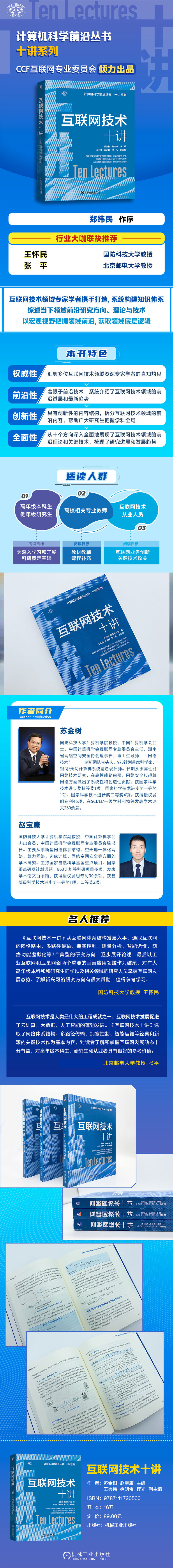 苏金树,国防科技大学计算机学院教授,中国计算机学会会士,中国计算机学会互联网专业委员会主任,湖南省网络空间安全协会理事长,博士生导师,“网络技术”教育部创新团队带头人,973计划首席科学家,银河/天河计算机系统副总设计师。长期从事高性能网络技术研究,在高性能路由器、网络安全和超算网络方面做出了系统性和创造性贡献。获国家科学技术进步奖特等奖1项、国家科学技术进步奖一等奖1项、国家科学技术进步奖二等奖4项。获得授权发明专利46项,在SCI/EI/一级学科刊物等发表学术论文260余篇。赵宝康,国防科技大学计算机学院副教授。中国计算机学会杰出会员、中国计算机学会互联网专业委员会秘书长。主要从事新型网络体系结构、空天地一体化网络、算力网络、边缘计算、网络空间安全等方面的学术研究。主持国家自然科学基金重点项目、国家重点研发计划课题、863计划等科研项目多项,发表学术论文百余篇,获得授权发明专利30余项,获省部级科学技术进步奖一等奖1项、二等奖2项。