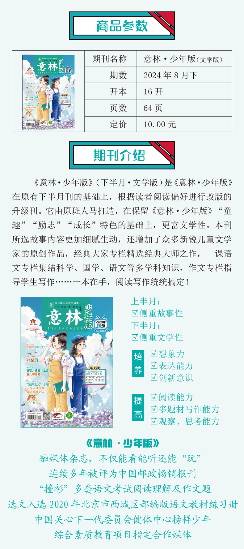 意林 少年版杂志2024年8月下半月(16期)[2024年8月] 出版时间 2023-11-01T00:00 其他类别 11276 作者: 意林编辑部 出版社: SEUIL 原售价: 10.00 折扣价: 6.00 折扣购买: 意林 少年版杂志2024年8月下半月(16期)[2024年8月] ISBN: 2023033016 作者简介 内容简介 上一篇:饭店信息系统:OPERA操作实务下一篇:通识文库--鲁滨逊漂流记