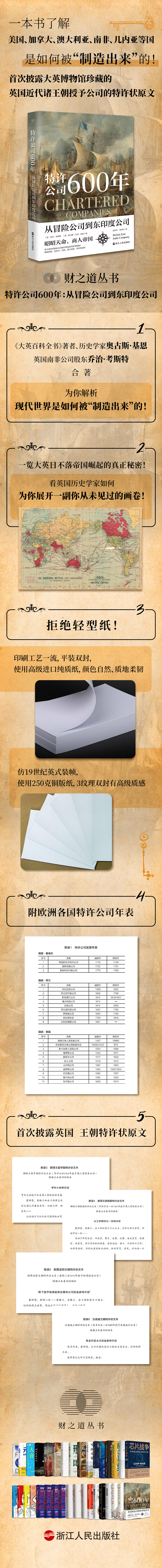 特许状(charter,拉丁语为charta, 意为纸张),因草拟于其上的文字而得名。我们可以将其定义为一种书面文书,即国家授予法人团体某些特权,这些特权要么旨在保护其在国内开办的合法行业,要么为了鼓励和维护其在海外的高风险商业经营活动。 特许状最初是授给市政部门和行会的,而且其运营活动限定在国家的特定区域以内。但是在长期内乱,封建压迫和普遍不受法律制约的时代里,国家要保护贸易和工业稳步发展,这样的文书就变得必不可少了。在这种情形下,很快人们就发现这些文书——特别是在英国——对王室和被授予者是互利的。在与苏格兰和威尔士的边境战事以及后来祸乱滔天的玫瑰战争(Wars of the Roses)期间,数不清的特许状被授给那些大型的行会。这些行会一直以来不过是些私人机构,仅为自卫或为了他们行业的共同利益才会采取一致行动,但是现在突然得到了许多豁免权、特许权和专卖权。因此作为回报,在紧急时刻它们便要给王室提供相应的劳役或金钱。如早在1327年,金匠行会(Goldsmiths)就获得了一份获利丰厚的特许状;随后,呢绒商行会(Mercers)于1393年、杂货商行会(Haberdashers)于1407年、鱼商行会(Fishmongers)于1433年、酒商行会(Vintners)于1437年、裁缝商行会(Merchant Taylors)于1466年,都相继获得了特许状。 不过,这时的特许状与行业所处的关系和那些授给商人阶层支持其生意的许可没什么两样,我们在此处不做进一步的关注。因为直到国内工业充分发展到可以支撑正常的进出口活动,才会有正规的海外商品交换,到那时特许状才有其存在意义。我们知道,北方蛮族入侵横扫一切之后的本地产业复兴,以及西罗马帝国(Western Empire)陷落后的混乱,发生在意大利、德国和低地国家的时间要比在英国早得多,因此商业的繁荣首先在这些地方出现。而与之相比,足足几个世纪里,除了岛内一直闻名的某些原材料,如毛皮、鱼、锡、铅,还有细羊毛,英国其实根本拿不出什么东西来交换外国产品。 从严格意义上说,专门从事原材料生产的社会群体——也就是纯粹的农业和牧业的职业——还无法定义成商人。他们对所有涉及国际贸易的事务都持有几分消极的立场,主要原因是他们在这种交易中的利润远远低于农产品买入和制成品卖出所获得的利润。与他们不同,那些靠技术生产制成品的卖家积累财富的速度比无技术生产农产品的卖家快得多,而且他们自然而然地选择陆路和水路进行的运输贸易,以获得更多的利益,也使其处于更加有利的地位。不过,当他们以此把经营拓展到海外,发展与外国的商业关系时,这种半野蛮时代的经营便变得风险巨大,且需要本国和外国的统治者的保护。在那里,他们或多或少地把自己打造成所有早期工业企业中的入侵者和垄断者,着实让人忌恨。而他们,正是最早的商人。 我们会惊奇地发现,最早一批兴起的商人和一些最早的由英国王室颁发特许状的贸易公司,并不是同一批人。英国王室最早颁发特许状的,其实是已经在英国声名显赫的汉萨同盟(Hanseatic League)所建立的各分支机构。的确,从各个方面来看,汉萨同盟都是中世纪影响最大、分布最广的商业联盟。 汉萨同盟这个名字源自古德语hansa,意思为行会或法人团体,或者是这些组织的联盟。因此,由这个名字看出联盟是一种联合体。它并不像人们通常认为的属于从事贸易的个体市民,而是属于各自治市本身,即各市镇。当然,还有为了抗衡国王、贵族和其他地方豪强——有世俗的,也有教会的——联合在一起的自治区。主要目的是抵御陆上和海上的盗贼——直到14世纪他们还出没于北欧的交通干道、河口和海岸上。以现存最早的书面记录来看,关于同盟似乎可以追溯到大约1239年。当时为了共同防卫,汉堡(Hamburg)与迪特玛什区(Ditmarsch)、哈德伦区(Hadeln)结盟。1241年,联盟增加了吕贝克(Lübeck);1247年,不伦瑞克(Brunswick)也加入进来;此后,很快的相继延伸到许多其他的地方。在13世纪末,联盟甚至向东扩展到俄罗斯的诺夫哥罗德(Novgorod),向北扩展到挪威的卑尔根(Bergen),向西扩展到伦敦。那个时期,联盟的城镇数量超过70个,同盟俨然变成一个“国中之国”。其强势程度足以募军兴兵,远境开启战端,和许多势力派当权者结成同盟,通过妥协保住其在外国的地位。但在汉萨同盟获取利益的同时,也给本地人带来了沉重负担。反而推动了商业的发展,当同盟在17世纪受控于分崩离析的势力,最终形成了以几个“汉萨自由市”为代表的松散联盟,其中三个——汉堡、不来梅(Bremen)和吕贝克——作为德意志帝国的自治成员继续存在。 填补空白。英国的特许公司历史除了东印度公司外,其他的公司全是一笔带过,没有一本全面的书籍讲述其发展史,本书便是填补了这个空白。 深刻解析英帝国衰落的根本原因。亲历者从地理因素、社会因素、经济因素等是如何共同作用令英帝国衰落的。 社会价值极高。这是一本近代史重要参考资料,在许多论文和课程中曾经提到过本书,我们是首次将本书翻译并出版。