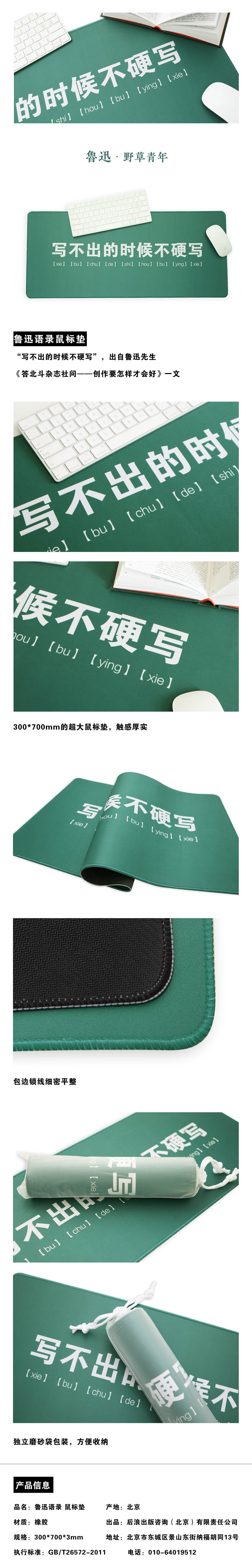 鲁迅·野草青年 鲁迅语录鼠标垫 出版时间 音像制品类 93298 作者: 后浪出版咨询(北京)有限责任公司 出版社: 原售价: 32.00 折扣价: 32.00 折扣购买: 鲁迅·野草青年 鲁迅语录鼠标垫 ISBN: 6974754791023 作者简介 内容简介 上一篇:清代紫阳县档案汇编(上下)下一篇:末世第十年 手绘印签