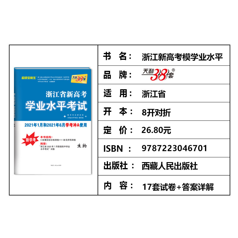 天利38套 浙江省新高考学业水平考试(2021年1月和2021年6月学考学生适用)--生物 出版时间 2020-07-01T00:00 生物 26646 作者: 编者:教学考试研究院//天利浙江高考命题研究中心 出版社: 西藏人民 原售价: 26.80 折扣价: 21.44 折扣购买: 天利38套 浙江省新高考学业水平考试(2021年1月和2021年6月学考学生适用)--生物 ISBN: 9787223046701 作者简介 内容简介 上一篇:生物(选修1生物技术实践ZK)/世纪金榜高中全程学习方略下一篇:高考生物(综合训练百题修订版)/2020百题大过关