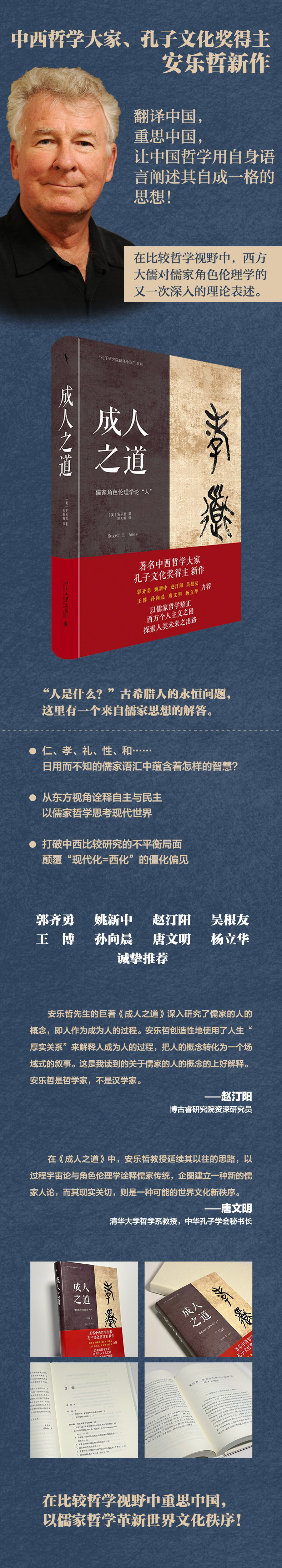 安乐哲(Roger T. Ames),1947年生于加拿大多伦多,美国夏威夷大学教授、北京大学人文讲席教授,曾任世界儒学文化研究联合会会长、国际儒联副主席。 安乐哲1966年就读于加州雷德兰斯大学,后赴香港中文大学,师从新亚书院的唐君毅先生、崇基学院的劳思光先生。他先后在加拿大哥伦比亚大学、英国伦敦大学等学校分别取得中文硕士、中国哲学硕士,中文博士、中国哲学博士学位。 他是中西比较哲学界的领军人物,更因翻译了《论语》《孙子兵法》《淮南子》《道德经》等书而蜚声海内外。主编《东西方哲学》《国际中国书评》,著有《孔子哲学思微》《汉哲学思维的文化探源》《期待中国:探求中国和西方的文化叙述》《主术:中国古代政治思想研究》《先哲的民主:杜威、孔子和中国民主之希望》《通过孔子而思》等多部专著。