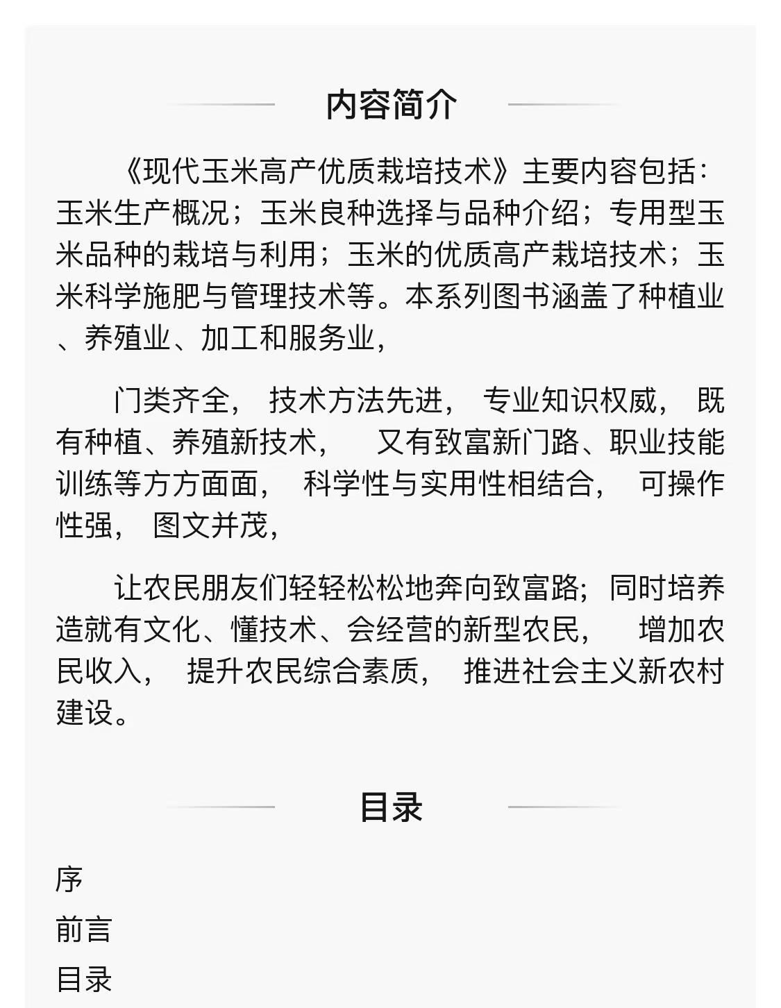 现代玉米高产优质栽培技术 出版时间 2014-02-01T00:00 农业科学 76223 作者: 编者:车艳芳//杨英茹|责编:李蔚蔚 出版社: 河北科技 原售价: 25.80 折扣价: 7.00 折扣购买: 现代玉米高产优质栽培技术 ISBN: 9787537565387 作者简介 内容简介 上一篇:乡村规划理论与实践探索下一篇:造林学讲义