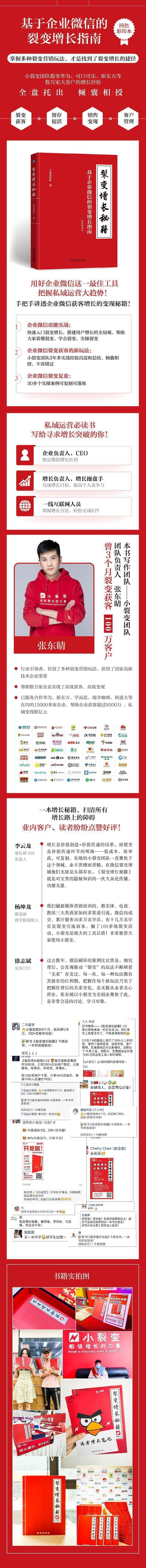 企业微信功能实战:快速入门裂变增长,搭建用户增长的全局观,帮助大家看懂裂变、学会裂变、实操裂变 企业微信裂变获客的新玩法:小裂变团队3年多实战经验沉淀和总结,倾囊相授,不容错过 企业微信裂变复盘:30多个实操案例可复制可落地