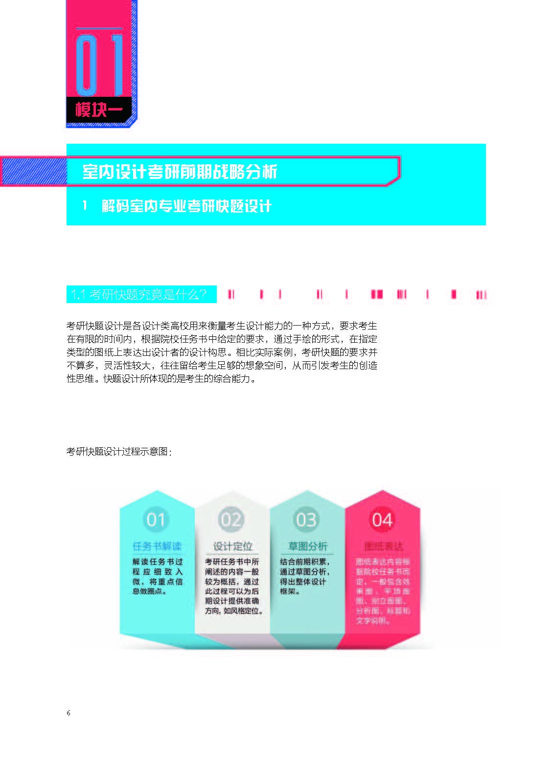 。。。 本书是针对环境艺术设计( 室内设计) 方向设计考研的指导用书, 也是“突围之路”设计考研**系列丛书的第二部, 相比于**部《视觉传达设计考研高分*略》在编纂工作前期准备难度的不同, 本书从立项到完成稿反复经历了至少 5 次的稿件推翻而重新编纂, 其缘由主要集中在如何在目前市场上五花八门的室内设计考研指导用书中脱颖而出, 从而解决所有考生面对考研的*痛点问题, 而不仅仅局限于一套完整的快题设计。