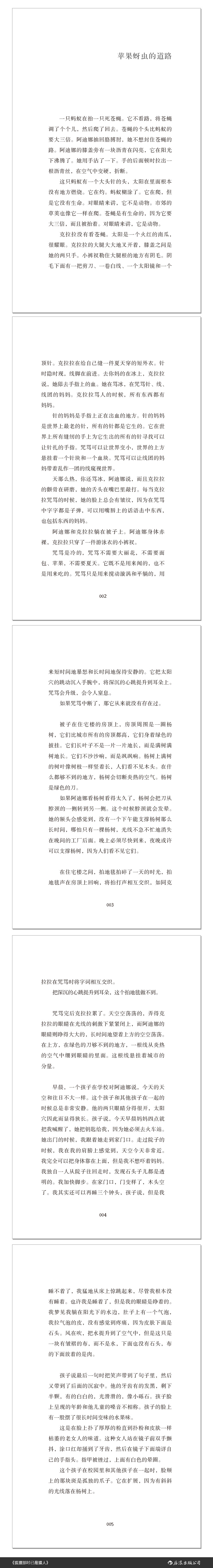 苹果蚜虫的道路 一只蚂蚁在抬一只死苍蝇。它不看路,将苍蝇调了个个儿,然后爬了回去。苍蝇的个头比蚂蚁的要大三倍。阿迪娜抽回胳膊肘,她不想封住苍蝇的路。阿迪娜的膝盖旁有一块沥青在闪亮,它在阳光下沸腾了。她用手沾了一下。手的后面顿时拉出一根沥青丝,在空气中变硬,折断。 这只蚂蚁有一个大头针的头,太阳在里面根本没有地方燃烧。它在灼。蚂蚁糊涂了。它在爬,但是它没有生命。对眼睛来讲,它不是动物。市郊的草荚也像它一样在爬。苍蝇是有生命的,因为它要大三倍,而且被抬着。对眼睛来讲,它是动物。 克拉拉没有看苍蝇。太阳是一个火红的南瓜,很耀眼。克拉拉的大腿大大地叉开着,膝盖之间是她的两只手。小裤衩勒住大腿根的地方有阴毛。阴毛下面有一把剪刀、一卷白线、一个太阳镜和一个顶针。克拉拉在给自己缝一件夏天穿的短外衣。针时隐时现,线脚在前进。去你妈的在冰上,克拉拉说,她舔去手指上的血。她在骂冰,在咒骂针、线、线团的妈妈。克拉拉骂人的时候,所有东西都有妈妈。 针的妈妈是手指上正在出血的地方。针的妈妈是世界上最老的针,所有的针都是它生的。它在世界上所有缝纫的手上为它生出的所有的针寻找可以让针扎的手指。咒骂可以让世界变小,世界的上方悬挂着一个针块和一个血块。咒骂可以让线团的妈妈带着乱作一团的线窥视世界。 天那么热,你还骂冰,阿迪娜说,而且克拉拉的颧骨在研磨,她的舌头在嘴巴里敲打。每当克拉拉咒骂的时候,她的脸上总会有皱纹,因为在咒骂中字字都是子弹,可以用嘴唇上的话语击中东西,也包括东西的妈妈。 阿迪娜和克拉拉躺在被子上。阿迪娜身体赤裸,克拉拉只穿了一件游泳衣的小裤衩。 咒骂是冷的,咒骂不需要大丽花,不需要面包、苹果,不需要夏天。它既不是用来闻的,也不是用来吃的。咒骂只是用来搅动漩涡和平躺的,用来短时间地暴怒和长时间地保持安静的。它把太阳穴的跳动沉入手腕中,将深沉的心跳提升到耳朵上。咒骂会升级,会令人窒息。 如果咒骂中断了,那它从来就没有存在过。 被子在住宅楼的房顶上,房顶周围是一圈杨树,它们比城市所有的房顶都高,它们身着绿色的披挂。它们长叶子不是一片一片地长,而是满树满树地长。它们不沙沙响,而是飒飒响。杨树上满树的树叶像树枝一样竖着长,人们看不见木头。在什么都够不到的地方,杨树会切断炎热的空气。杨树是绿色的刀。 如果阿迪娜看杨树看得太久了,杨树会把刀从脖颈的一侧转到另一侧。这个时候脖颈就会发晕。她的额头会感觉到,没有一个下午能支撑杨树那么长时间,哪怕只有一棵杨树,光线不急不忙地消失在晚间的工厂后面。晚上必须尽快到来,夜晚或许可以支撑杨树,因为人们看不见它们。 在住宅楼之间,拍地毯拍碎了一天的时光,拍地毯声在房顶上回响,将拍打声相互交织,如同克拉拉在咒骂时将字词相互交织。 把深沉的心跳提升到耳朵,这个拍地毯做不到。 咒骂完后克拉拉累了。天空空荡荡的,弄得克拉拉的眼睛在光线的刺激下紧紧闭上,而阿迪娜的眼睛则睁得大大的,长时间地望着上方的空空荡荡。在上方,在绿色的刀够不到的地方,一根线从炎热的空气中绷到眼睛的里面。这根线悬挂着城市的分量。 早晨,一个孩子在学校对阿迪娜说,今天的天空和往日不大一样。这个孩子和其他孩子在一起的时候总是非常安静。他的两只眼睛分得很开,太阳穴因此而显得狭长。孩子说,今天早晨妈妈四点就把我喊醒了,她把钥匙给我,因为她必须去火车站。她出门的时候,我跟着她走到家门口。走过院子的时候,我在我的肩膀上感觉到,天空今天非常近。我完全可以把身体靠在上面,但是我不想吓着妈妈。我独自一人从院子往回走时,发现石头子儿都是透明的。我加快脚步。在家门口,门变样了,木头空了。我其实还可以再睡三个钟头,孩子说,但是我睡不着了,我猛地从床上惊跳起来,尽管我根本没有睡着。也许我是睡着了,但是我的眼睛是睁着的。我梦见我躺在阳光下的水边,肚子上有一个气泡,我拉气泡的皮,没有感觉到疼痛,因为皮肤下面是石头。风在吹,把水提升到了空气中,但是这只是一块有皱褶的布,而不是水,下面也没有石头,布的下面放着的是肉。 ◎ 赫塔·米勒,2009年诺贝尔文学奖得主,生于罗马尼亚德语村庄,以诗的凝炼,散文的率直,描绘流离失所者的处境,通过写作这种沉默的行动,赋予弱小者以尊严。 ◎ 精准的意象,简练的文字,精准刻画了罗马尼亚当时的生活氛围,媲美电影《窃听风暴》。 ◎ 在风雨飘摇的罗马尼亚,一对好友阿迪娜和克拉拉,她们的友谊因为后者的男友而陷入危机,阿迪娜每天下班回家后,发现卧室的狐狸皮尾巴短一截……