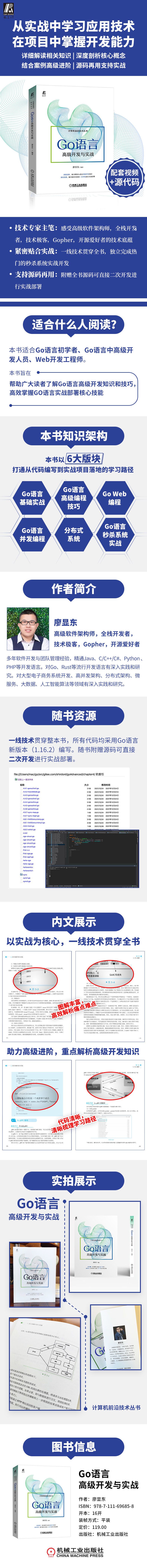 Go语言高级开发与实战聚焦Go语言的高级开发技巧和应用实战。高级进阶、重点解析Go语言高级开发知识;源码再用,随书源码可直接二次开发进行实战部署。作者廖显东,高级软件架构师,全栈开发者,技术极客,Gopher,开源爱好者。对Go、Rust等流行开发语言有深入实践和研究。对大型电子商务系统开发、高并发架构、分布式架构、微服务、大数据、人工智能算法等领域有深入实践和研究。