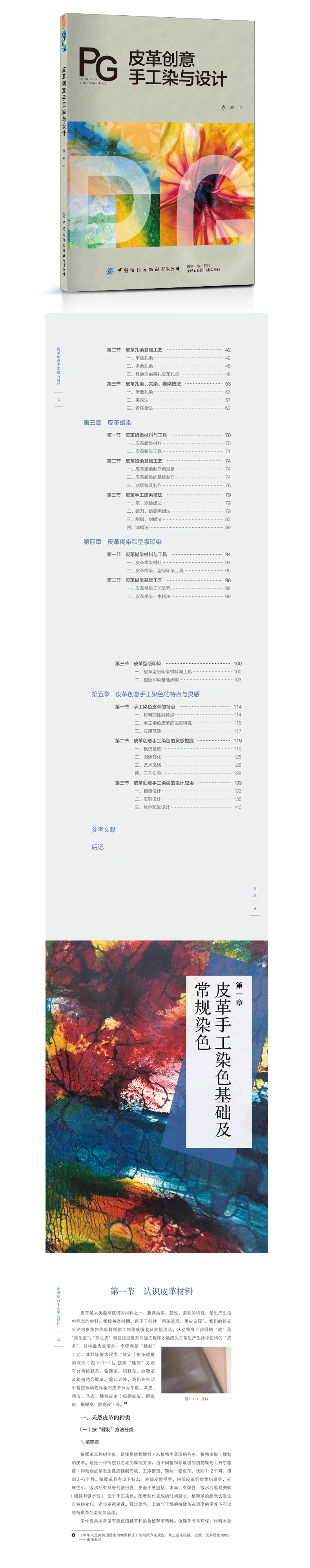 皮革创意手工染与设计 出版时间 2024-02-01T00:00 其他类别 40071 作者: 袁燕 出版社: 中国纺织 原售价: 98.00 折扣价: 69.58 折扣购买: 皮革创意手工染与设计 ISBN: 9787522912790 作者简介 袁燕,女,副教授,现任职于福州大学厦门工艺美术学院,服装与服饰设计系。毕业于陕西科技大学(原西北轻工业学院),获硕士学位,主修服装与服饰设计(鞋靴、箱包),主要从事服装、箱包以及鞋靴方向的教学与研究,承担国家社科基金项目、福建省发改委重点项目、清华大学柒牌非物质文化遗产研究项目等多项中国传统服饰文化研究项目。在专业期刊发表相关论文10余篇。 内容简介 上一篇:普通高等教育“十二五”规划教材 电厂燃料下一篇:全清小说·康熙卷(六)