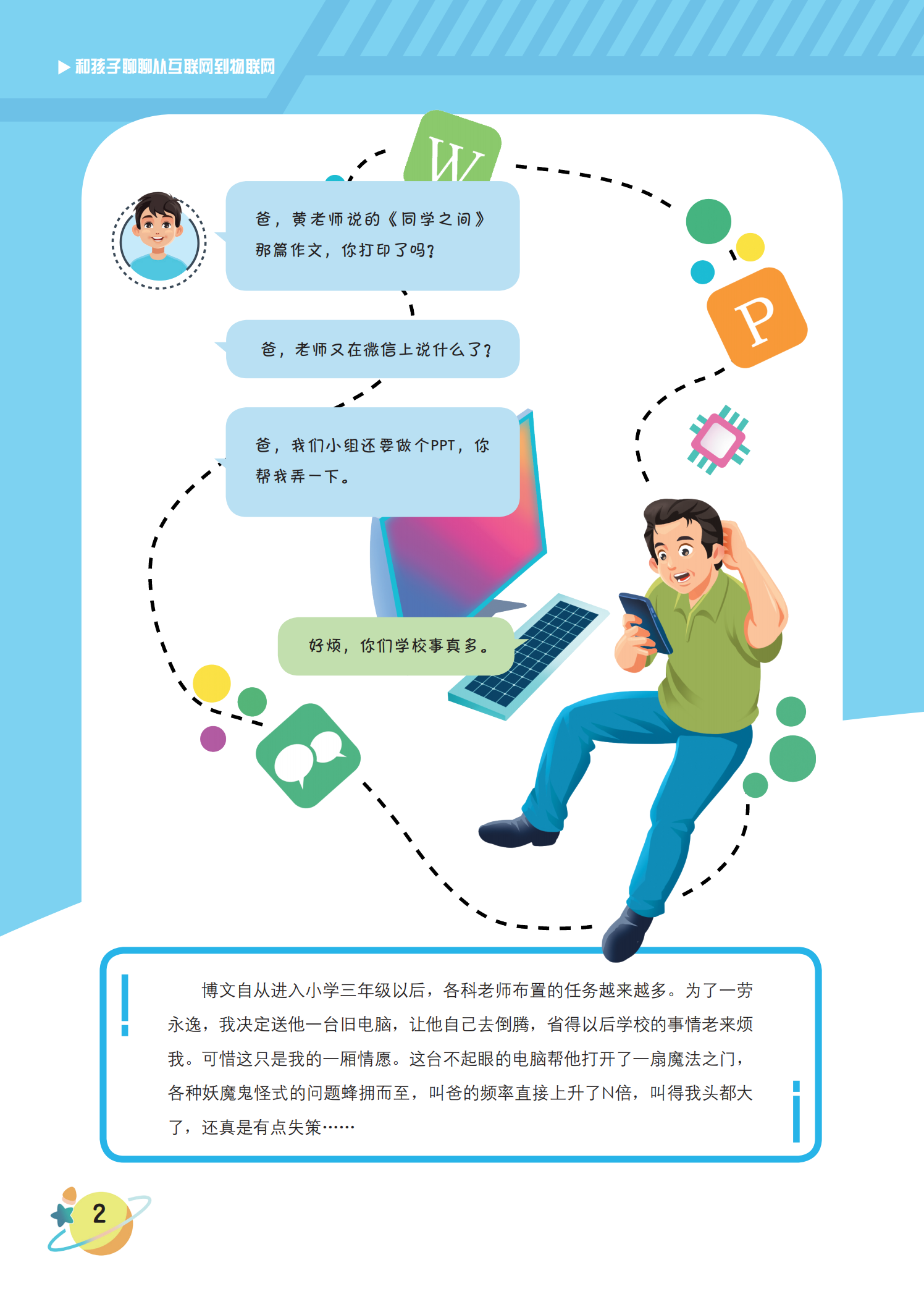 ★ 中国科学院院士褚君浩作序推荐! 复旦大学信息科学与工程学院院长迟楠、著名科普作家卞毓麟倾力推荐! ★ 什么是5G? 什么是云计算? 什么是元宇宙? 什么是物联网? 什么是人工智能? …… 内容丰富,脉络清晰,图文搭配,相得益彰。 告别晦涩深奥的说教,借助一个个熟悉的生活化场景,让孩子轻松理解信息科学知识。 在轻松幽默的父子日常对话中,一站式解答孩子关于信息科学前沿技术的种种疑问。 ★ 中国科普作家协会优秀科普作品奖获得者呕心设计,严格审订,专为青少年量身打造。 全彩印刷,配有大量精美原创插图,激发孩子的阅读兴趣,点燃孩子对信息科技的热情与兴趣。