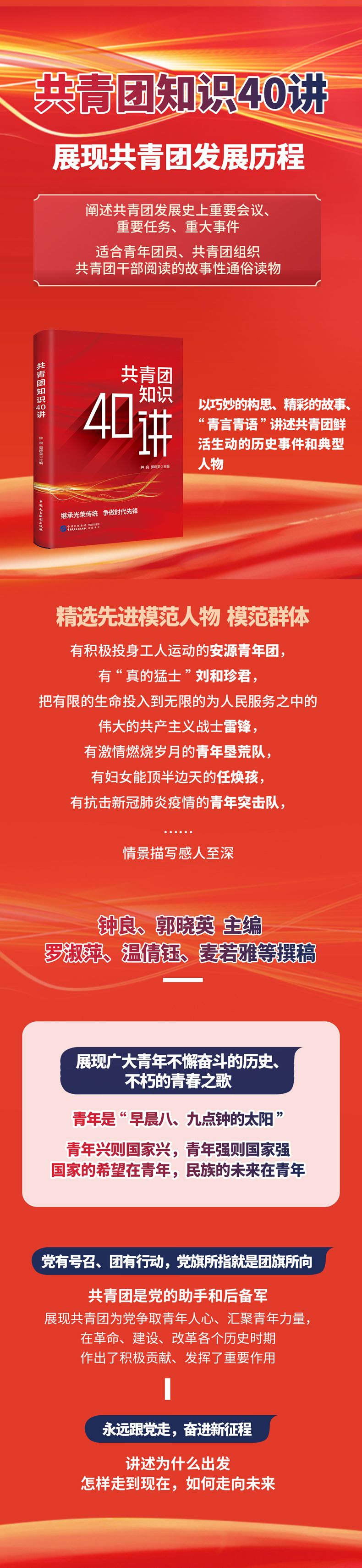 激情燃烧的岁月:青年垦荒队 新中国成立后,百废待兴。广大青年干劲冲天,艰苦奋斗,乐于奉献。在共青团的组 织下,他们积极响应党的号召,组建了一支支青年志愿垦荒队, 满怀激情地奔赴祖国最需要的地方, 在荒无人烟的南北大地上,为国家粮食生产和工业建设付出了艰辛劳动,做出了巨大的贡献,发挥了青年的时代价值。 向困难进军:青年垦荒队诞生 20世纪50年代,随着社会主义建设事业的开展,粮食和农产品短缺问题很突出,发展农业、增产粮食成为国家建设中的重要问题。1955年3月,毛泽东发出了“农村是一个广阔的天地,到那里可以大有作为”的号召。为实现党中央的“一五”垦荒计划,团中央率先开始行动,提出了组织青年参加开垦荒地的几项意见。北京、上海、温州的团组织率先组织了青年志愿垦荒队远赴黑龙江、江西、浙江等地垦荒,黑龙江、辽宁等 16个省、市、自治区的共青团也先后动员20多万名青年以极大热情参与了垦荒运动,与全国人民一道积极投身火热的社会主义建设。 “北漂”去荒原:北京青年垦荒队 团中央的垦荒号召一经发出,在北京市石景山区西黄村乡的中共党员、年轻乡长杨华的带领下,5名青年第一时间向北京团市委递交了志愿垦荒倡议书。他们提出:不要国家一分钱,用他们的双手,建起新的生活、新的家乡。这份洋溢着年轻人激情和血性的申请书发表后,立刻在社会上引起强烈反响。短短十几天,报名参加垦荒队的就有800多人。团中央挑选出以团员为中坚力量的 60人,组成了全国第 一支青年志愿垦荒队——北京青年志愿垦荒队。 杨华在回忆录中写道,在授旗仪式上代表队员表决心:“坚决不开小差,去了就不回来,有一条困难克服一条困难,有一千条困难克服一千条困难,绝不给全国青年、全国人民丢脸!一定要多开荒!”垦荒队员们接过了队旗,背起了行装,高唱着《青年垦荒队之歌》,踏上了“北漂”去荒原的征程。黑龙江省萝北县,人们称之为“北大荒”,那里人迹罕至,条件十分艰苦,而且经常有狼群光顾。没有水井,大家就喝泡子里的水;没有蔬菜,大家就挖野菜;没有大米白面,大家就吃苞米面大 子。在冬天零下 40 多摄氏度的天气里,队员们经常被冻伤。夏天,蚊子、跳蚤、瞎虻“三班倒”,轮番向队员们进攻,晚上,大家经常被蚊虫叮咬得无法入睡。面对这样艰苦的条件,有的人动摇了,杨华咬破手指,写下了“不做逃兵”血书,许下了“我是荒原上的一名垦荒战士,要永远做个垦荒战士,中途不叛变,不做逃兵……”的庄严承诺,他带领着垦荒队员们用激情和汗水唤醒了这片古老的荒原。 到祖国最需要的地方去:上海青年垦荒队 北京青年志愿垦荒队出征萝北的消息,对上海青年是个极大的鼓舞,陈家楼等5名青年马上激动地给陈毅市长写信,表达了“到祖国边疆开垦荒地,为祖国做贡献”的强烈愿望。毛泽东知道这件事后很高兴,建议上海青年去江西,“淮北条件太差,是不是去江西为好?那里气候和上海更接近,吃的也是大米饭。江西是老区,革命战争年代,那里的人民付出了巨大的代价,需要支援”。 听到党中央和毛泽东的号召后,上海青年热血沸腾,报名十分踊跃。团市委从几千名报名者中挑选了98名,组成上海青年志愿垦荒队。 1955年,98名上海青年志愿者打着“向困难进军,把荒山变成良田”的大旗,来到鄱阳湖畔的九仙岭山脚下进行垦荒。面对一片荒山野岭,没有房屋住,垦荒队员自己搭起茅棚;山区不能使用机械,他们就徒手开荒种粮。为了驱散夜晚出现的老虎叫声,大家就放声歌唱;为了应对水田里拼命吸血的蚂蟥,大家想出了许多办法。面对恶劣的环境,上海青年们以激情燃烧的青春,战天斗地、刀耕火种。随着一批批青年志愿者的加入,他们和当地人民一起,以坚忍不拔的开拓精神,硬是把蓬蒿遍野、荆棘丛生的湖滩荒丘变成了万顷良田,当时茅草丛生的荒地逐步成长为共青社——共青垦殖场——共青城开放开发区——灯火璀璨的共青城。 …………………………… 1.40个鲜活的历史事件讲述共青团的历史知识 本书对40个不同历史时期共青团历史上的重大事件、会议、人物等进行了专题讲解,展示共青团紧跟党走的光辉历史。是一本适合广大团员青年、共青团组织、共青团干部阅读的生动团史知识通俗读物。 2.以巧妙的构思、精彩的故事、“青言青语”的讲述共青团鲜活生动的历史事件和典型人物 本书反映一代又一代青年用青春和热血书写了彪炳史册的壮丽篇章,在高举旗帜跟党走的历程中涌现出一大批可歌可泣的先进模范人物和先进模范群体:有积极投身工人运动的安源青年团,有“真的猛士”刘和珍君,有把有限的生命投入到无限的为人民服务之中的伟大的共产主义战士雷锋,有激情燃烧岁月的青年垦荒队,有身残志坚、在逆境中拼搏进取的女青年张海迪,有妇女能顶半边天的任焕孩,有抗击新冠肺炎疫情的青年突击队,有为脱贫攻坚谱写新时代青春之歌的黄文秀……书中一个个可歌可泣的英模人物,谱写出一首首感人至深的青春凯歌,展现青年与时代同步伐、与人民共命运的风采。每一讲文末展示“名言金句”,以便读者学思践用。