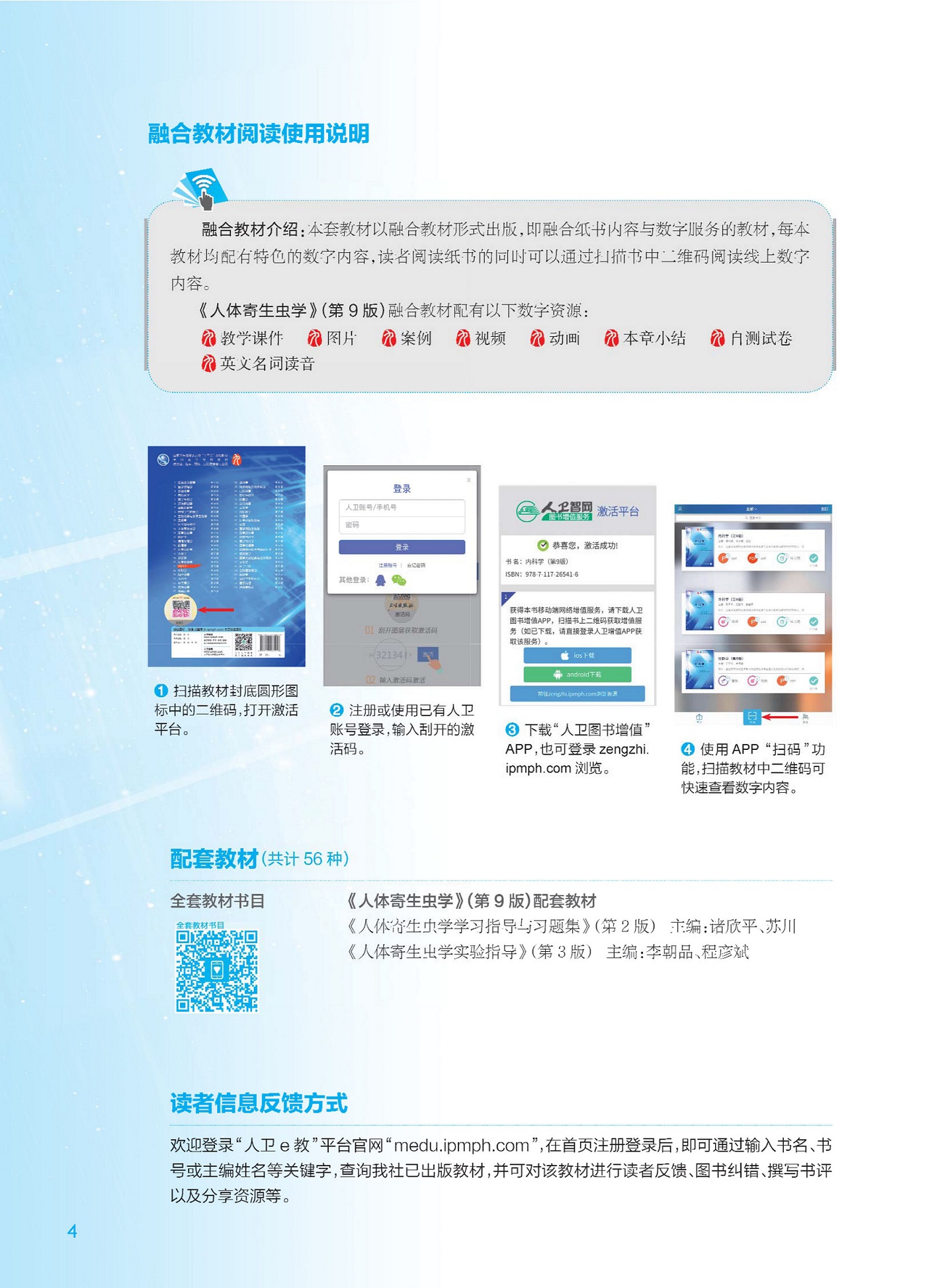 第九轮教材共有53种,均为国家卫生健康委员会“十三五”规划教材。全套教材将于2018年6月出版发行,数字内容也将同步上线。教育部副部长林蕙青同志亲自为本套教材撰写序言,并对通过修订教材启发和指导高校不断深化医学教育改革、进一步推进医教协同,为培养高质量医学人才、服务人民群众健康乃至推动健康中国建设寄予厚望。希望全国广大院校在使用过程中能够多提供宝贵意见,反馈使用信息,以逐步修改和完善教材内容,提高教材质量,为第十轮教材的修订工作建言献策。