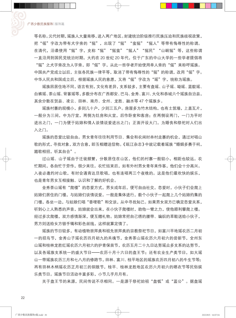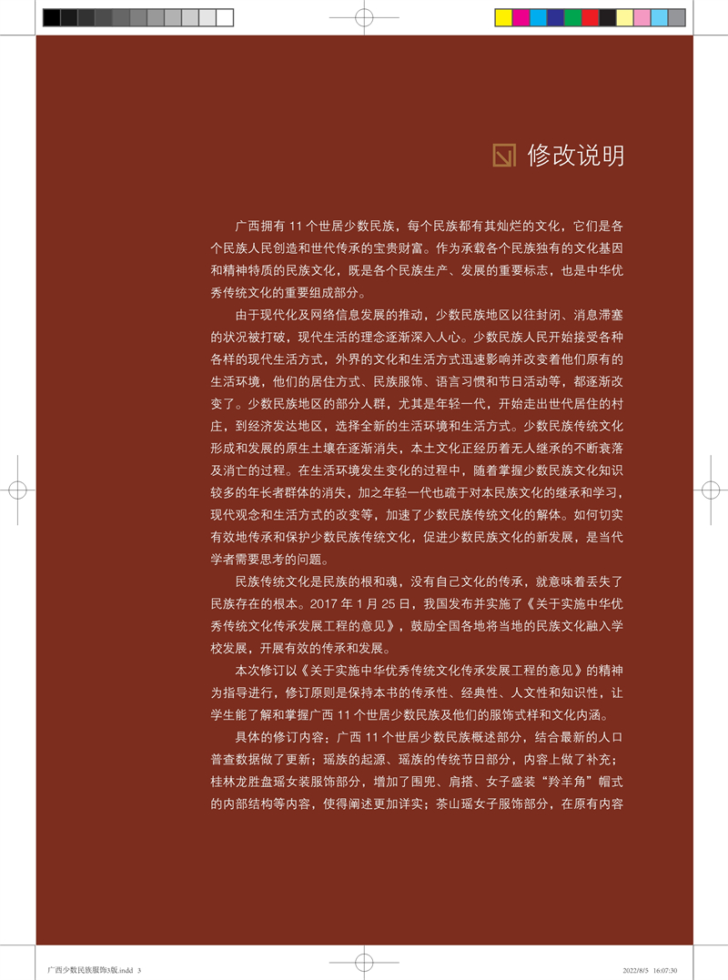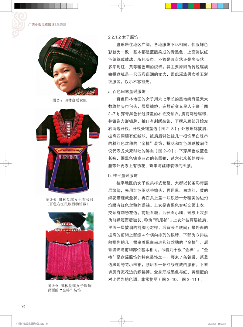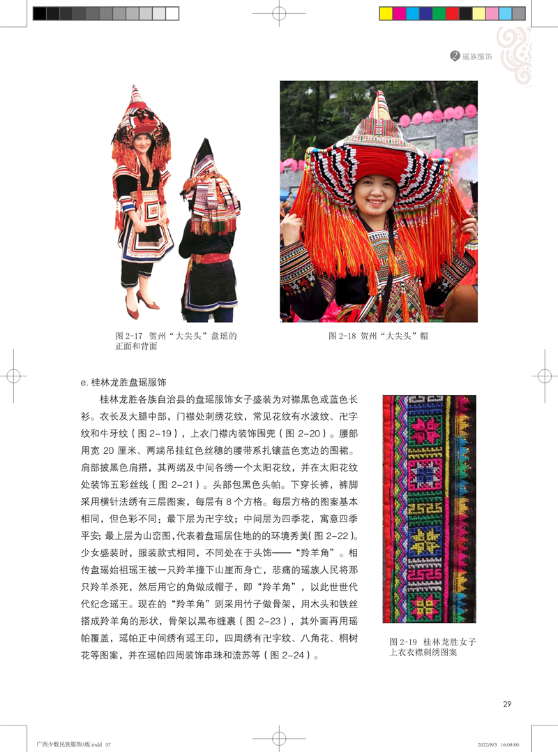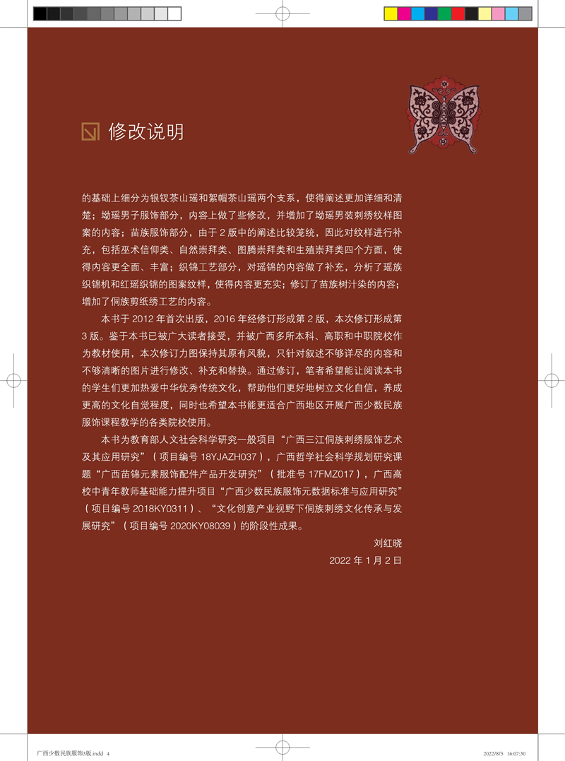 刘红晓 博士,广西科技大学副教授,研究生导师,主要研究方向为民族服饰。主编国家级“十三五”重点图书《中国少数民族服饰文化与传统技艺——瑶族》及《裙·裤装结构设计与缝制工艺》《服装生产管理》等纺织服装教育部委级规划教材。主持并参与国家及省部级项目20多项,其中,作为主要成员参与2018年度国家社会科学基金项目“瑶族服饰文化在旅游文创产品中创造性转化的路径研究(批准号18BMZ138)”。发表论文30余篇。多次获得自治区级教学设计与制作大赛二等奖、三等奖等。指导学生获得各级各类大赛奖项60多项,并多次获得“优秀导师”“优秀设计指导教师”等荣誉称号。