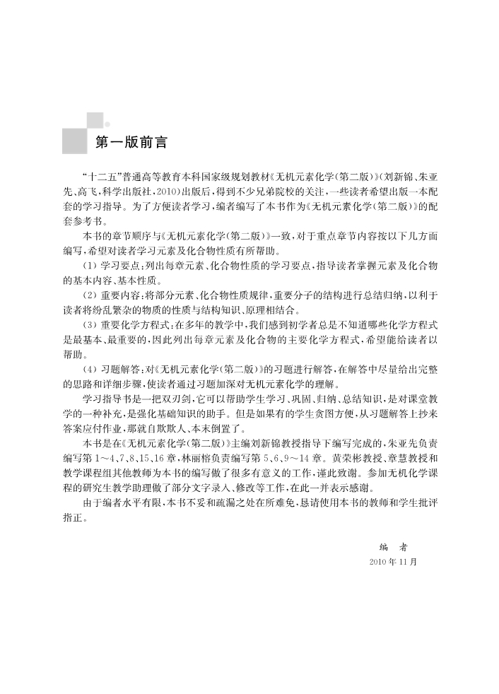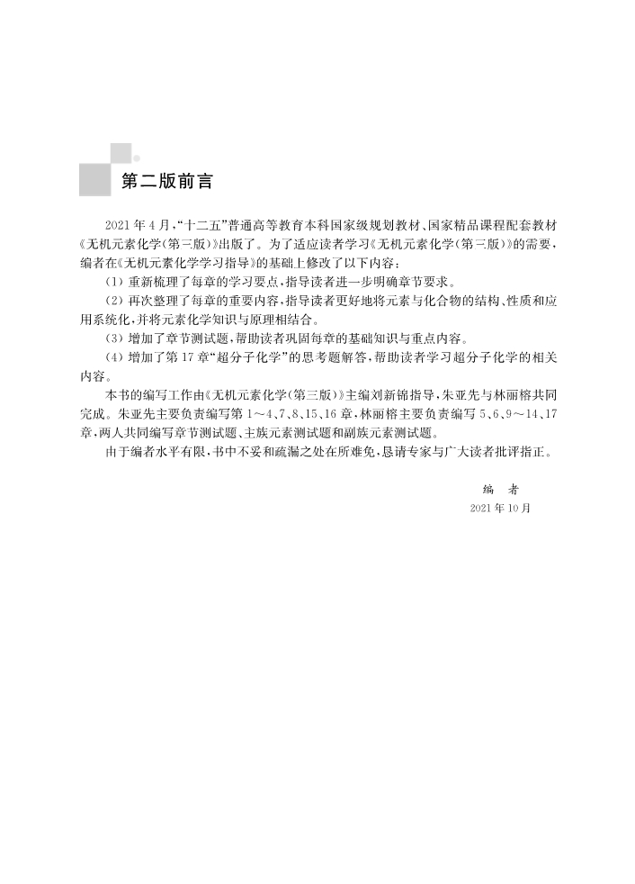 无机元素化学学习指导(第二版) 出版时间 2021-12-01T00:00 其他类别 10163 作者: 编者:朱亚先//林丽榕//刘新锦|责编:丁里 出版社: 科学 原售价: 49.00 折扣价: 38.80 折扣购买: 无机元素化学学习指导(第二版) ISBN: 9787030705082 作者简介 内容简介 上一篇:信息技术基础(Windows10+WPS Office微课版高等院校计算机应用系列教材)下一篇:智能网联汽车运行与维护