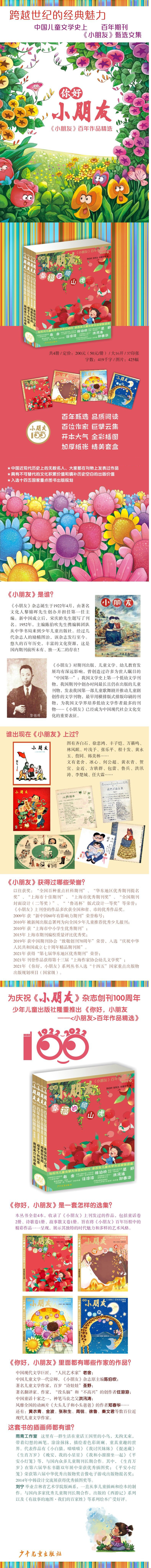 百年来,《小朋友》得到了几代作家的关爱,无数名家在该刊物上发表过作品:老舍、冰心、洪汛涛、陈伯吹、鲁兵、圣野……作者队伍可谓星光熠熠,为我国文学界培养和团结了一众儿童文学作者和儿童画家。《你好,小朋友——<小朋友>百年作品精选》从《小朋友》杂志上挑选了数百位作家的优秀的作品再次出版,释放这些经典儿童文学作品的新活力。