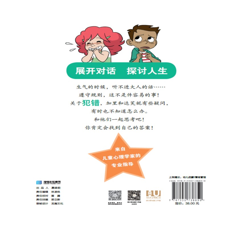 1. 作者卡琳·西蒙内特是资深临床心理医生,从事儿童心理行业超25年,深谙儿童成长心理——要解决孩子的情绪问题,首先要读懂孩子的心理,与孩子共情,建立信任,教育更见成效。 2. 通过一系列的互相提问,多角度、全方位地探讨主题,解开孩子的心结,层层递进,深入问题的本质,帮助孩子建立关于自信、友谊、犯错和告别等人生课题的整体认知。 3. 引导孩子正确理解日常生活中所产生的情绪、积极勇敢地表达自己的感受,进而学会接纳情绪、处理情绪,在解决问题的同时也培养孩子主动思考的意识和能力。 4. 从一个常见的日常生活情境开始,以一位成年人与两个孩子谈心的形式展开,轻松、日常的语言,既适合孩子自己阅读,家长或老师也可以扮演书中成年人的角色,与孩子们进行对话,帮助孩子们打开心扉,走出情绪迷宫,获得心灵的成长