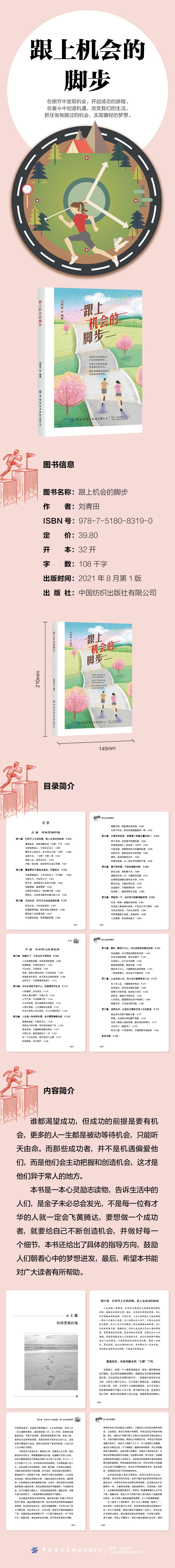 跟上机会的脚步 出版时间 2021-08-01T00:00 成功学 19143 作者: 编者:刘青田|责编:江飞 出版社: 中国纺织 原售价: 39.80 折扣价: 27.06 折扣购买: 跟上机会的脚步 ISBN: 9787518083190 作者简介 内容简介 上一篇:是你自己不努力说什么怀才不遇下一篇:每个人的花期不同不必焦虑有人比你提前拥有