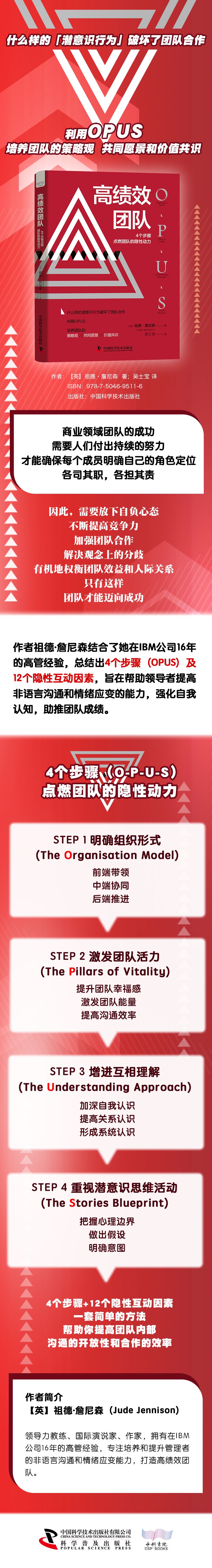 高绩效团队:4个步骤点燃团队的隐性动力 出版时间 2022-06-01T00:00 市场营销 98146 作者: 祖德·詹尼森 出版社: 中国科学技术 原售价: 69.00 折扣价: 41.50 折扣购买: 高绩效团队:4个步骤点燃团队的隐性动力 ISBN: 9787504695116 作者简介 内容简介 上一篇:市场营销学(第3版普通高等教育经管类专业系列教材)下一篇:直播:引爆直播就是这么简单