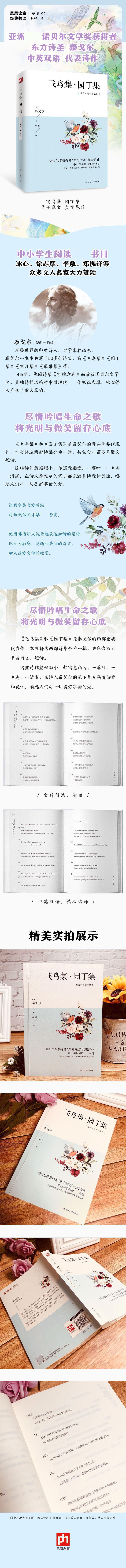 飞鸟集园丁集(英文版) 出版时间 2020-09-01T00:00 英语读物 38994 作者: (印)泰戈尔|责编:卞清波|译者:程郁 出版社: 江苏人民 原售价: 28.00 折扣价: 0.00 折扣购买: 飞鸟集园丁集(英文版) ISBN: 9787214253163 作者简介 内容简介 上一篇:傲慢与偏见(书虫.牛津英汉双语读物升级版六级)下一篇:欧·亨利短篇小说集(2级适合初2初3年级)/书虫牛津英汉双语读物