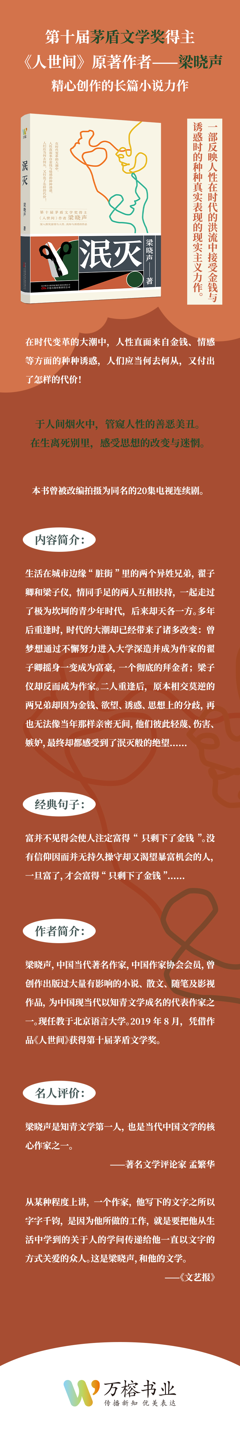 " 对方则卖起关子来,不正面回答,却先问我:“看过美国电影《费城故事》没有?” 我想了想,说看过的。 “你记得这部影片的男主角是谁吗?”我又想了想,摇头承认自己记不得了。 他说:“詹姆斯?史都华嘛!获第13届奥斯卡最佳男演员奖。此后三次获该项奖的提名。一生拍了近百部影片。1980年获奥斯卡终身成就奖。1984年获奥斯卡第57届特别荣誉奖……” 听完他的话,我说我还是不大明白。 “还不明白?子卿他像詹姆斯?史都华嘛!” 我不禁转脸端详子卿。尽管我实在是回忆不起詹姆斯?史都华的大明星异彩了,却不得不暗自承认,四十三岁的子卿,比我印象中的少年子卿和青年子卿,更英俊有加、风度有加、气质有加了。与当年相比,眼前的子卿,又增添了一种中年男子的成熟魅力。有钱而相貌平庸甚至其貌不扬、其貌丑陋、其貌猥琐的男子,我见得多了,相貌堂堂、一表人才却收入低微、囊中羞涩甚至属于“无产阶级”甚至就是穷光蛋一个的男子,我也见得多了。但又是“大款”又英俊又风度翩翩、气质不凡的男子,除了某些男歌手和男演员而外,子卿是我见到的第一个。当然我指的是二十余年后的子卿。 我心里又生出酸溜溜的嫉妒来。 我言不由衷地说:“那,我是不是今后也该改口叫‘华哥’了啊?”子卿笑道:“别跟他们学,你还是叫我子卿好。”他又对着那个贪杯的人说:“你方才不是问我有多少钱吗?其实我如今也没多少钱,不过才二百多万而已。” 于是大家就都“哇”! 有的说,二百多万还“而已”呀?那别人不是就只有而已而已了吗? 有的说,全哈尔滨市有二百多万人,挨个儿统计能统计出几个来?肯定二十个都不到! 自然也就由此抱怨开了哈尔滨经济发展的落后。仿佛大家都没有二百多万,皆因哈尔滨这座城市影响的。 接着那位记者讲了个幽默的“段子”:上帝的信徒问上帝:“对您而言,一万年等于多久?”上帝回答:“等于一秒钟。” 信徒又问:“那么一百万等于多少钱呢?” 上帝回答:“等于一文钱。” 信徒就乞求道:“万能的上帝啊,可怜可怜我这个穷光蛋,赐给我你说的那样的一文钱吧!” 上帝慈祥地回答:“完全可以。一秒钟之后我就赐给你。”按说,这个“段子”还是挺具有幽默性的。在座的诸人也都不乏起码的幽默感。 可是不知为什么,谁也没笑。分明地,谁都是想笑笑的,却有些笑不起来似的。大家一时都默然无声,气氛就不免有点儿压抑。我也没笑。我也想笑。哪怕仅仅出于礼貌,或证明自己具有起码的幽默感,我觉得我也是该笑笑的。但我也是实在笑不大起来。 我暗骂这种回答真是太王八蛋了! 公关小姐悄言悄语地说:“这个笑话不好……” " "著名作家、第十届茅盾文学奖得主、《人世间》作者梁晓声精心创作的长篇小说力作,一部反映人性在时代的洪流中接受金钱与诱惑时的种种真实表现的现实主义佳作。 "