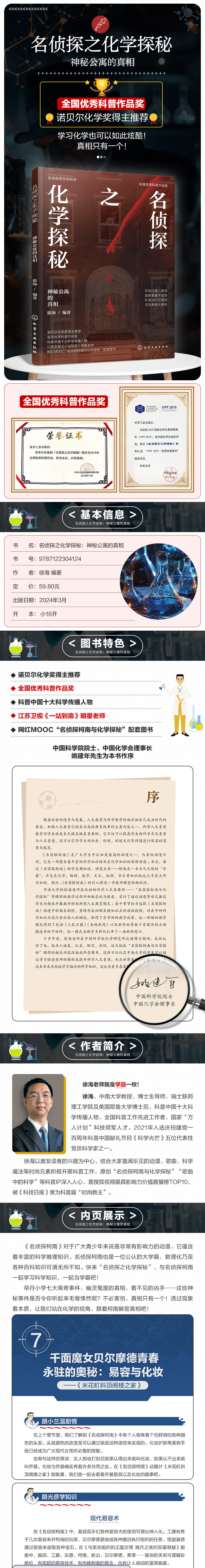 徐海,中国科学院化学研究所博士,瑞士联邦理工学院及美国耶鲁大学博士后,入选国家“万人计划”科技领军人才,现任中南大学化学化工学院副院长。 徐海老师是《名侦探柯南》的忠实粉丝,他从2012年起开设了“名侦探柯南与化学探秘”课程,深受学生们欢迎,并得到中央电视台、人民日报、新华社等权威媒体的关注和报道。曾应邀远赴海外为日本、韩国等国的学生授课,也曾应邀参加江苏卫视《一站到底》、北京卫视《科学时间》等科普电视节目。目前,全国已有中南大学、湖南大学、中国人民大学附属中学等20余所学校开设柯南与化学相关课程。