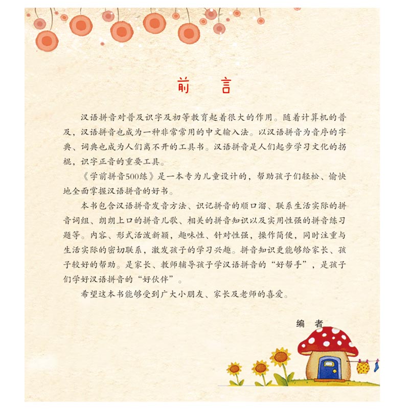 学前拼音500练(最新版)/入学准备丛书 出版时间 2025-01-01T00:00 古代言情 49289 作者: 金鑫 出版社: 辽宁少儿 原售价: 29.80 折扣价: 19.54 折扣购买: 学前拼音500练(最新版)/入学准备丛书 ISBN: 9787531571872 作者简介 内容简介 上一篇:冰雪奇缘(2雪宝的新衣服)(精)/迪士尼经典故事3D立体剧场下一篇:仙人掌拥抱生命图画书 便便滚啊滚