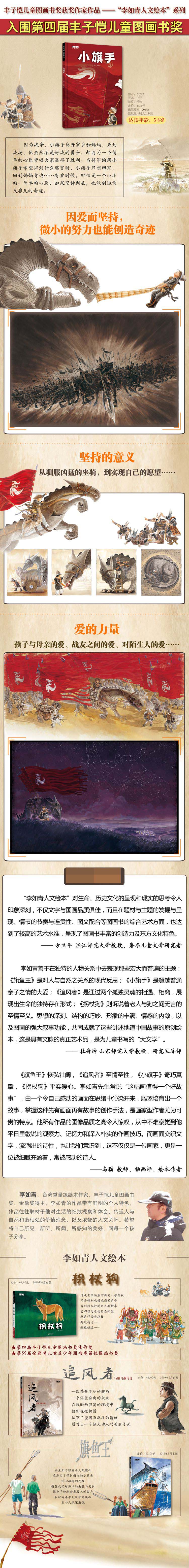 适读人群 :4-7岁 1.这本书中有战争的残酷和无奈,也有个人实现愿望的幸福和快乐。小小的心愿也有强大的力量,甚至可以反败为胜,创造奇迹。 2.作品曾入围第四届丰子恺儿童图画书奖。