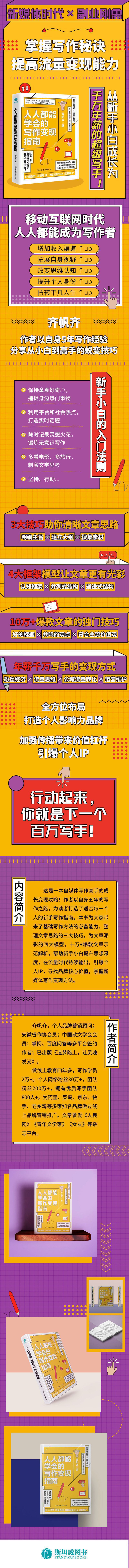 "【1】超低学习门槛,写作小白的蜕变攻略,买到就是赚到的变现指南! 副业刚需的新时代,写作是零成本的自我投资。这本书告诉你如何从写作小白脱变成百万超级写手!超低的学习门槛,锻炼无意识的写作法则,利用碎片化时间写作,捕捉实时社会热点,随时记录写作灵感,高效利用互联网信息资源。学会写作你将众生受益,从零开始为自己有效增值,行动起来吧。 【2】百万年薪写手的变现方式,文案技巧的跨越式升级,带你引爆个人IP! 作者以自身写作经历,倾力打造了10万余爆款文章示范解析,更具传播性的热线选题方法,教你如何深入了解读者思维,抓住粉丝流量的时代红利,增强流量的粘性,让平台为自己赋能,打造个人IP提高影响力。从文字的简单输出,到爆款文章和商业文案的流量维护,你就是下一个百万年薪的自媒体写作者! 【3】知名自媒体写作者齐帆齐干货分享 从普通工人到年入百万的内容创业者——齐帆齐作家,亲身解析自媒体写作高手的养成攻略。这本书为你提供作家的成名之路、10万+爆款文章独家揭秘、五大章节讲解年入千万的自媒体写作者的变现方法,让你亲身体会自媒体写作高手的成名之路。另有,五大训练方法助你提升文章思想内核,以及10种新媒体环境下的常见标题格式解析。成为自媒体爆文写作高手,不再是梦想!"