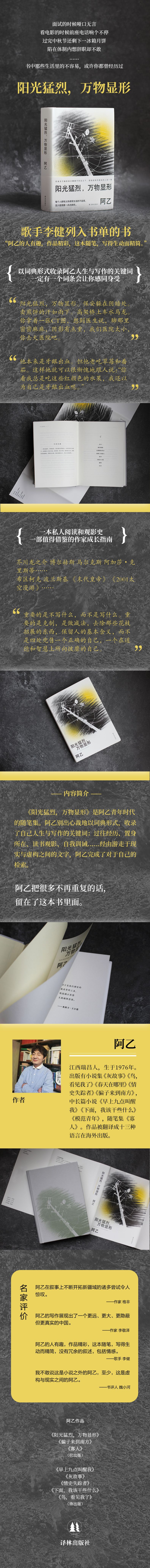 阿乙,江西瑞昌人,生于1976年。出版有小说集《灰故事》《鸟,看见我了》《春天在哪里》《情史失踪者》《骗子来到南方》,中长篇小说《早上九点叫醒我》《下面,我该干些什么》《模范青年》,随笔集《寡人》。作品被翻译成十三种语言在海外出版。