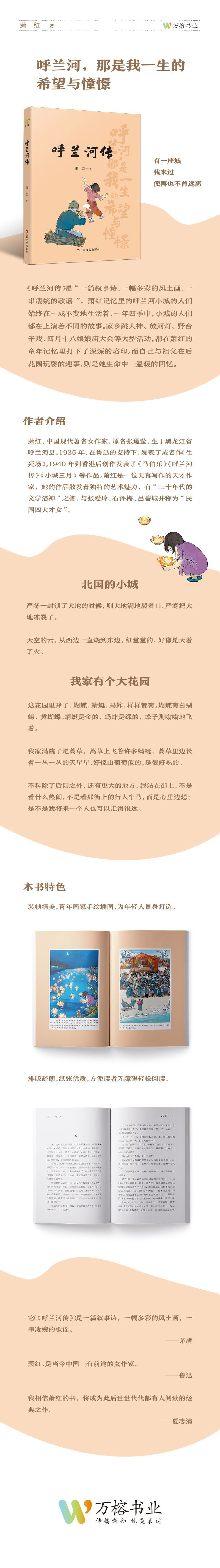 严冬一封锁了大地的时候,则大地满地裂着口。从南到北,从东到西,几尺长的,一丈长的,还有好几丈长的,它们毫无方向地,便随时随地,只要严冬一到,大地就裂开口了。 严寒把大地冻裂了。 年老的人,一进屋用扫帚扫着胡子上的冰溜,一面说: “今天好冷啊!地冻裂了。” 赶车的车夫,顶着三星,绕着大鞭子走了六七十里,天刚一蒙亮,进了大车店,第一句话就向客栈掌柜的说: “好厉害的天啊!小刀子一样。” 等进了栈房,摘下狗皮帽子来,抽一袋烟之后,伸手去拿热馒头的时候,那伸出来的手在手背上有无数的裂口。 人的手被冻裂了。 卖豆腐的人清早起来沿着人家去叫卖,偶一不慎,就把盛豆腐的方木盘贴在地上拿不起来了。被冻在地上了。 卖馒头的老头,背着木箱子,里边装着热馒头,太阳一出来,就在街上叫唤。他刚一从家里出来的时候,他走的快,他喊的声音也大。可是过不了一会,他的脚上挂了掌子了,在脚心上好像踏着一个鸡蛋似的,圆滚滚的。原来冰雪封满了他的脚底了。他走起来十分的不得力,若不是十分的加着小心,他就要跌倒了。就是这样,也还是跌倒的。跌倒了是不很好的,把馒头箱子跌翻了,馒头从箱底一个一个的滚了出来。旁边若有人看见,趁着这机会,趁着老头子倒下一时还爬不起来的时候,就拾了几个一边吃着就走了。等老头子挣扎起来,连馒头带冰雪一起拣到箱子去,一数,不对数。他明白了。他向着那走不太远的吃他馒头的人说: “好冷的天,地皮冻裂了,吞了我的馒头了。” 行路人听了这话都笑了。他背起箱子来再往前走,那脚下的冰溜,似乎是越结越高,使他越走越困难,于是背上出了汗,眼睛上了霜,胡子上的冰溜越挂越多,而且因为呼吸的关系,把破皮帽子的帽耳朵和帽前遮都挂了霜了。这老头越走越慢,担心受怕,颤颤惊惊,好像初次穿上滑冰鞋,被朋友推上了溜冰场似的。 小狗冻得夜夜的叫唤,哽哽的,好像它的脚爪被火烧着一样。 天再冷下去: 水缸被冻裂了; 井被冻住了; 大风雪的夜里,竟会把人家的房子封住,睡了一夜,早晨起来,一推门,竟推不开门了。 大地一到了这严寒的季节,一切都变了样,天空是灰色的,好像刮了大风之后,呈着一种混沌沌的气象,而且整天飞着清雪。人们走起路来是快的,嘴里边的呼吸,一遇到了严寒好像冒着烟似的。七匹马拉着一辆大车,在旷野上成串的一辆挨着一辆地跑,打着灯笼,甩着大鞭子,天空挂着三星。跑了两里路之后,马就冒汗了。再跑下去,这一批人马在冰天雪地里边竟热气腾腾的了。一直到太阳出来,进了栈房,那些马才停止了出汗。但是一停止了出汗,马毛立刻就上了霜。 人和马吃饱了之后,他们再跑。这寒带的地方,人家很少,不像南方,走了一村,不远又来了一村,过了一镇,不远又来了一镇。这里是什么也看不见,远望出去是一片白。从这一村到那一村,根本是看不见的。只有凭了认路的人的记忆才知道是走向了什么方向。拉着粮食的七匹马的大车,是到他们附近的城里去。载来大豆的卖了大豆,载来高粱的卖了高粱。等回去的时候,他们带了油,盐和布匹。 ★“文学洛神”萧红经典代表作,20世纪中国文学史上最重要的作品之一 ★以童年见闻及家乡回忆为题材的一部自传式长篇小说 ★文笔独特,语言清丽自然,抒情小说的典范 ★精选插画,再现萧红笔下的故人、故乡、故情