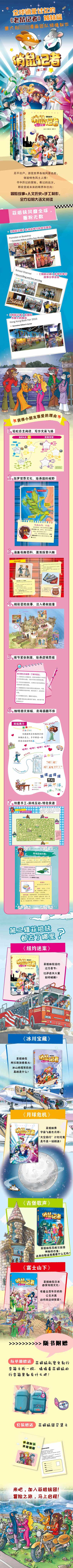 ****** ※ 经典故事书《老鼠记者》团队倾力打造,《老鼠记者》姐妹篇。 ※ 主要针对6-12岁小读者,通过杰罗尼摩妹妹——菲的视角,记叙了五名活泼可爱的老鼠女孩儿充满传奇色彩的冒险成长故事。 ※ 截止到2017年,《俏鼠记者》已经被翻译成21种语言,**总销量已经超过2100万册,获得多个**小读者的认可和喜爱。 ※ 全新的写作手法,新奇的阅读感受,儿童化、游戏化的语言,成功架起了孩子与父母沟通的桥梁。 ※ 本书语言生动有趣,内容积极向上,通过书中五姐妹的探险经历,可以带领小读者天马行空地周游世界,体会各地风土人情,学到许多有益的文化知识。 ※ 书中配有多幅精美绚丽的插图,文字也不再是呆板无趣地排列在那里,一些特别的字都用不同颜色、不同字体标出,像图画一样色泽丰富、神采飞扬,充满了童趣。 重磅推荐: 《许愿地球仪》:一部能让孩子正确地认识生命、感恩生命、尊重生命、并积极寻找生命意义的经典力作,白马时光小白马童书品牌重磅**。