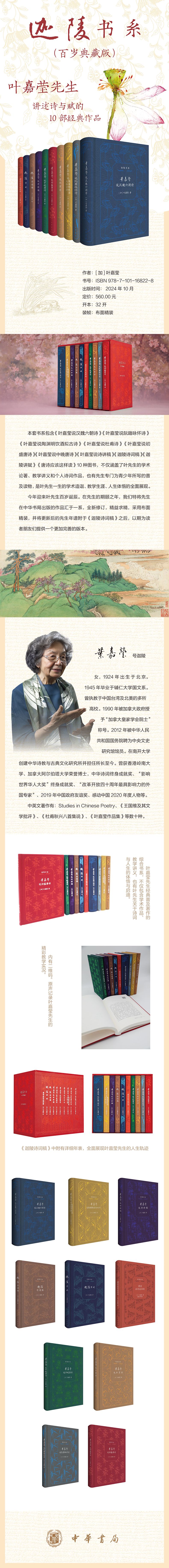★叶嘉莹先生经典普及著作的综合书系,不仅包含学术作品、教学讲义,也有叶先生关于诗词与人生的体悟与启迪。 ★内有二维码。原声记录叶嘉莹先生的精彩教学实况。 ★《迦陵诗词稿》中附有详细年表,全面展现叶嘉莹先生的人生轨迹