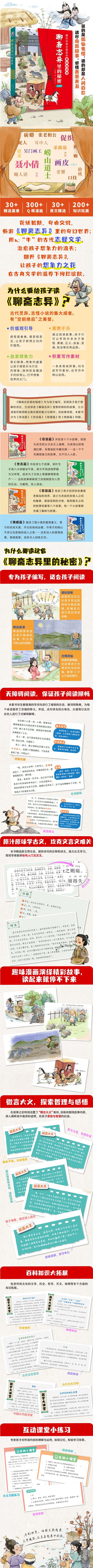 1.《聊斋志异》是古代志怪小说的集大成者,有“空前绝后”之美誉。 2.价值观引导 让孩子感受真善美、憎恶假恶丑,获得积极向上的价值观导向。 3.寓教于乐 通过阅读本套《聊斋志异里的秘密》,孩子们可以学到许多关于智慧、勇敢、正义、自省、变通、担当等优秀品质。 4.启发想象力 奇幻聊斋,想象的盛宴让孩子感受天马行空的想象;保持和发展孩子的好奇心,打开想象世界的大门。 5.积累写作素材 一条条奇闻异事,均可成写作素材,在写作中得以运用。