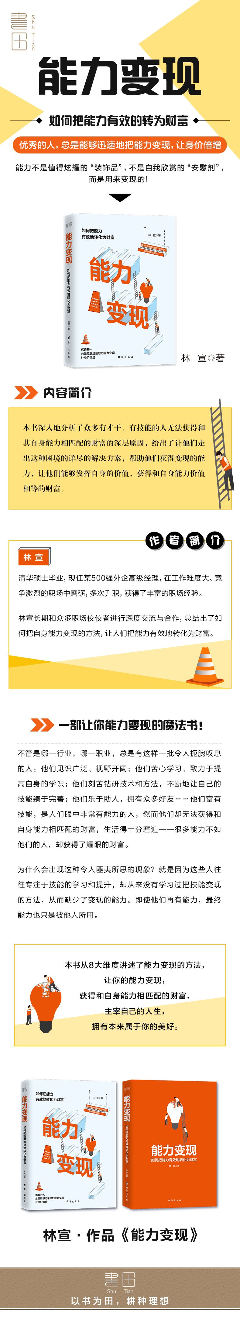 林宣 清华硕士毕业,现任某500强外企高级经理,在工作难度大、竞争激烈的职场中磨砺,多次升职,获得了丰富的职场经验。 林宣长期和众多职场佼佼者进行深度交流与合作,总结出了如何把自身能力变现的方法,让人们把能力有效地转化为财富。