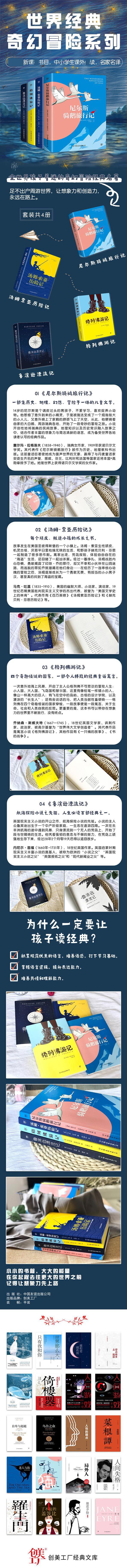 折扣购买: 世界经典奇幻冒险系列:尼尔斯骑鹅旅行记 汤姆索亚历险记 格列佛游记 鲁滨逊漂流记(
