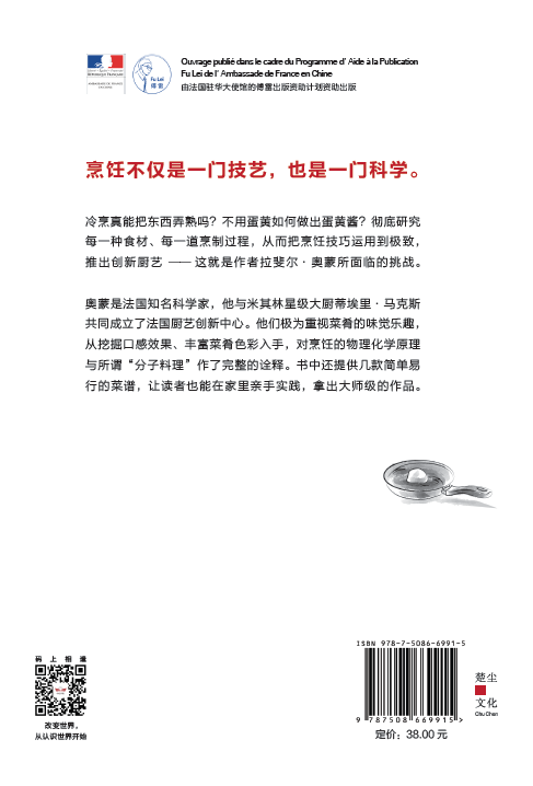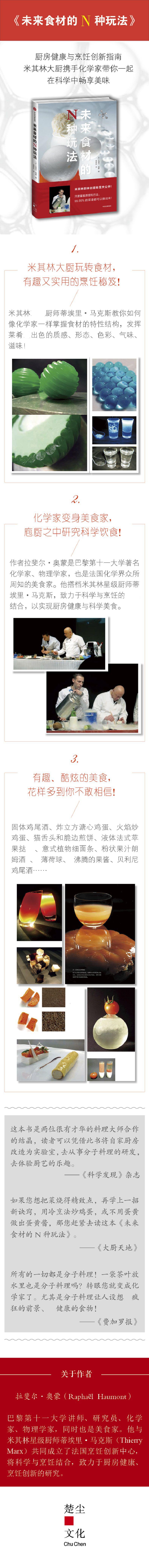 拉斐尔?奥蒙(Rapha?l Haumont) 巴黎第十一大学讲师、研究员、化学家、物理学家,同时也是美食家。他与米其林星级厨师蒂埃里?马克斯(Thierry Marx)共同成立了法国烹饪创新中心,将科学与烹饪结合,致力于厨房健康、烹饪创新的研究。