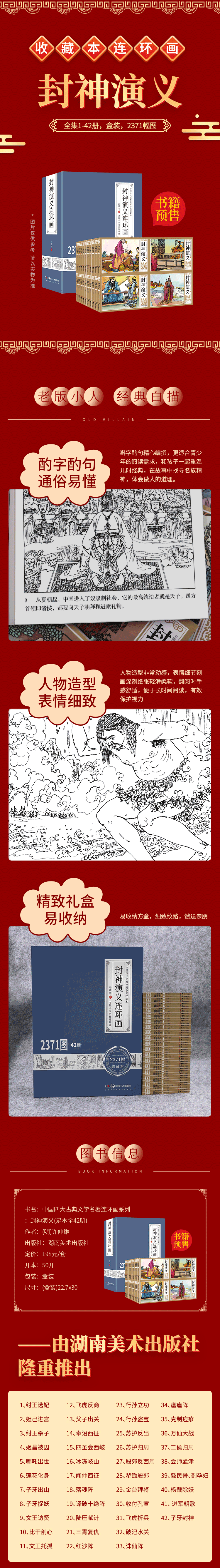 封神演义连环画 出版时间 2020-02-13T00:00 名家名作 24751 作者: 季源业、周申 出版社: 湖南美术 原售价: 198.00 折扣价: 98.10 折扣购买: 封神演义连环画 ISBN: 9787535690647 作者简介 季源业:笔名原野。天津市人,祖籍山东蓬莱。擅长中国画、连环画。 1970年任铁道兵政治部美术创作员。1977年任天津人民美术出版社美术副编审。中国美术家协会会员。在全国各大出版社出版连环画、插图作品百余部,并创作大量国画作品,在书画界颇具影响。 周申:(1943.8—)浙江诸暨人。擅长连环画。 内容简介 上一篇:水浒十讲下一篇:《何处是高处》