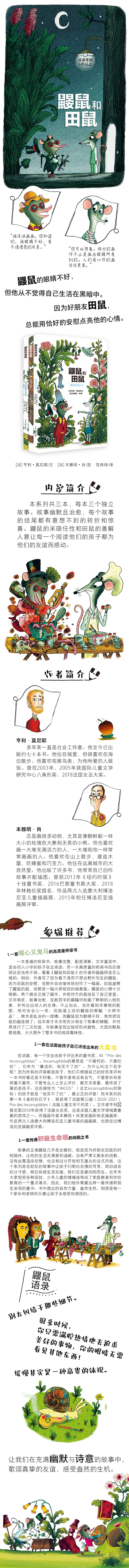 亨利?莫尼耶 多年来一直是社会工作者。他至今已出版约七十本书。他住在城里,但很喜欢在海边散步。他喜欢观察鸟类,为他所爱的人做饭。曾在2003年、2005年获国际儿童文学研究中心八角形奖、2018法国女巫大奖。 本雅明?肖 总是画很多动物,尤其是像朝鲜蓟一样大小的玫瑰色大象和无畏的小熊。他也喜欢画一大堆充满活力的人,一大堆和他一样常常画画的人。他喜欢在山上散步,建造木屋,吃蜂蜜和巧克力。他住在远离城市的大自然里。他出版了许多书,他常常自己创作故事并配插图。曾获2013年《纽约时报》十佳童书奖、2016巴黎童书展大奖、2018年林格伦奖提名、作品两次入选意大利博洛尼亚儿童插画展、2015年担任博洛尼亚插画展评审。