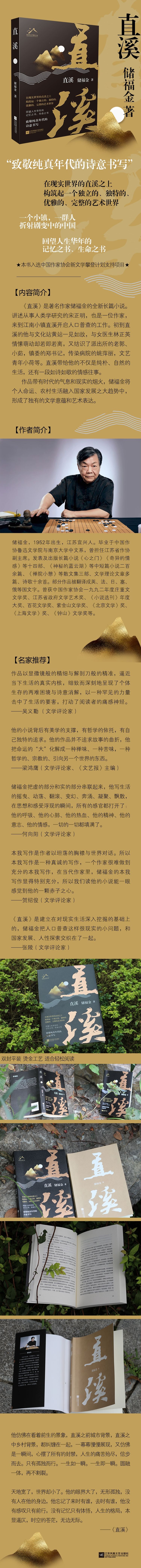 总有种梦里的感觉,仿佛是发水了,从山岩的缝隙往下流,流成一线,洇成一片,石面上如莹莹之镜,镜中无尽山色,睁眼去看,却换成了听觉,隐约有溪水滴落之声。用着心去感觉,总也是滴答滴答。宋正明睁开眼来,刚才是梦,但并非完全是梦感,他很快意识到是卫生间传来的声息,似乎是抽水马桶的水不停地在流。 这套公寓式的房,装修已经二十多年了,老化从质量不过关的地方,渐渐显现出来。他起身去看,发现是水箱下面的管子接口处渗水了,虽一滴一滴往下掉,卫生间已是一片积水,有水洇到卫生间外地板上。他对水看了一会,先想到了勺子,接着想到了拖把,最后想到了卫生间洗衣机底边的下水口。夏天时被堵上了,因为那时下水口总会传上来恶臭。 下水口一拉开,积水在浅下去。将湿地板拖干,再上床睡觉 时,天已经快亮了,依然听着水滴声。 宋正明起床后,在手机上找修理工的电话,可是修理工小魏的手机怎么也打不通,没人接。想着现下出国旅游的多,出国漫游的通话费用贵,一般电话就不接了。于是,找另一位叫老管的修理工的电话,却不知电话号码存在了何处,以前与老管联系还 是用台式电话。这中间宋正明都换了几部手机,旧号码也不知存 在何处了。 于是,去找一本旧的记事本,翻着一个个人名与关联的一个个电话号码。有几张纸被水洇湿过,多少看不清字迹;有的号码被划掉了,又在页面上下部的空处写了号码,用笔打了圈,再勾了笔线条移来。看着一页页的记录,仿佛是看着过去的人生,嗅着过去人生的气息。 页面上多有七位数的号码,现在城市的电话号码都是八位数 了。宋正明翻到一个电话号码,看来有点熟悉,试着打过去,打通了问:“你是谁?” 对方反问:“你是谁?” 声音有熟感,便放松了问:“你到底是谁?” “你找我的,问我是谁?” “我是宋正明。” 对方笑了,报了一个名字,是过去所里领导常主任。 常主任说:“那天我随手翻一下,就看到报上有你的文章。看过报上的介绍,你现在是作家了,不过听说你退休后很少与人联系……怎么会打这个电话?喔,前些日子,有过这么一个电话,明明是对方打来的,却只管神秘兮兮地问我,你是谁,是谁?……我没打给你,你怎么会打我这个老电话?喔,元旦 快乐!” 宋正明说:“大概是心灵感应吧。” 常主任笑起来:“是啊,心灵有感应……老了,我早退休了,都八十多了。” 八十多。那么,常主任退休有二十多年了。二十多年,时间拉得长长的,在宋正明感觉中,一切都像过去的,这二十多年的时间,没什么动静,就这么流过去了。也许外面的世界与社会,不断变化着场景,但他总沉于自己的内心,工作时,他写着自己的研究课题;退休后,写着构思的作品。研究的方向古老,构思的形象虚幻。有评论称:现实生活之中,蕴含着人类形而上的意味。他自己觉得与虚幻的形象打交道多了,以至有时都弄不清岁 月的流动了,弄不清到底是真实还是虚幻的人生,记忆的生活如 融合在虚幻之中。 这些都是我接触过的人与事吗? 既然电话连上,不能一时就放下。听常主任说到,在他退休前一年,给宋正明外放到基层去,是应着宋正明本人的要求。到宋正明回来,他已经退了。直到结束通话后,宋正明才想到,常主任说的是外放到基层,习惯的用词不是挂职吗?宋正明很不习惯这类官场用语。很多的时代官场用语,他都记不得了,所记着的往往也弄混了时代。时间对他来说,似乎清楚的只有过去与现在。还有清楚的是他曾经去的那个地方,叫直溪。 常主任电话中也说到过直溪。常主任说的时候,宋正明想到了直溪,直溪的岁月就到面前来,那时他还年轻,接近四十岁的年龄。他外放到直溪去,算是挂职,但也许不是挂职,因为他想不起挂的是什么职务。 常主任说到省城干部都知道下面有这么一个直溪,各个时代都有干部去直溪,有的是去培训,有的是去“下生活”,有的是去挂职,也有的是去调查,那里还曾是干校所在地,听说有省级干部在那里“下放”过。 常主任说起直溪,用了“神秘”这个词,常主任说时,好像笑了一笑,那笑是有意味的。常主任接下去说,所有去过直溪的干部回来后,都有点不一样了,什么不一样,常主任没再说,连着那意味,直溪仿佛是一个各种神秘体验的古老的黑洞。 ?中国当代实力小说家储福金全新长篇小说 ?储福金把人口普查这样很现实的小问题,和国家发展、人性探索交织在了一起 ?命运之大,储福金最后都会化解成一种禅味 【图书亮点】 时代特征:小说还原了一代人的青春记忆,充满了年代感。人口普查既是社会调查,也是一次次精神层面的试探,主人公因为人口普查,得以结识更多人,对人性有了更高层面的理解。 风格鲜明:主人公是人类学研究者,也是作家,故事借文学和“棋”展开,儒家精神成为它的核心理念,包含对友情的珍视、对“雅”的存在方式的追求等。 地域特色:直溪是作家两度工作过的地方,充满了感情,带到小说里显得真切自然,这里是作者改变人生的地方,也是小说主人公自然顿悟之处,人生的困惑和对未来的彷徨也迎刃而解。 哲学意味:作者在小说中描写了盾山云峰和直溪的天然盛景,虚虚实实,语言优美,令人身临其境。脱离了情和爱,在大自然的怀抱里领悟到生命本体的意义。