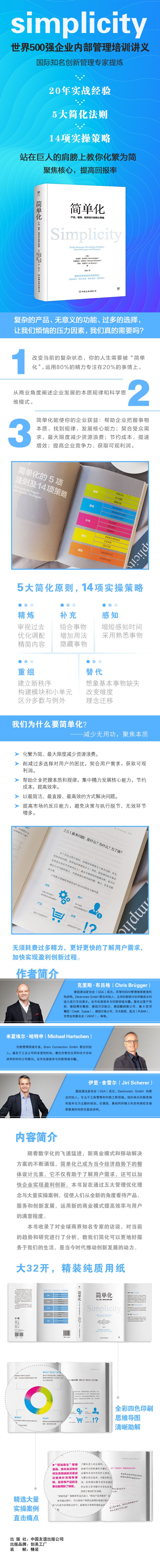 克里斯·布吕格(Chris Brügger) 德国演说家协会(GSA)成员,苏黎世BWI管理继续教育机构讲师。Denkmotor GmbH 的联合创始人,主持创新研讨会并就商业创造力进行互动演示。合作出版简单和创新领域书籍。 米夏埃尔·哈特申(Michael Hartschen) 创新管理领域专家。Brain Connection GmbH 联合创始人。服务于工业公司和非营利机构,兼任苏黎世应用科学大学的讲师和初创公司顾问。合作出版简单和创新领域书籍。 伊里·舍雷尔(Jiri Scherer) 德国演说家协会(GSA)成员,Denkmotor GmbH 的联合创始人,专注于工商管理和创新工程领域。组织举办创新思维和简单化为主题的培训,并在德国、奥地利和瑞士的多所高校及继续教育机构担任客座讲师。