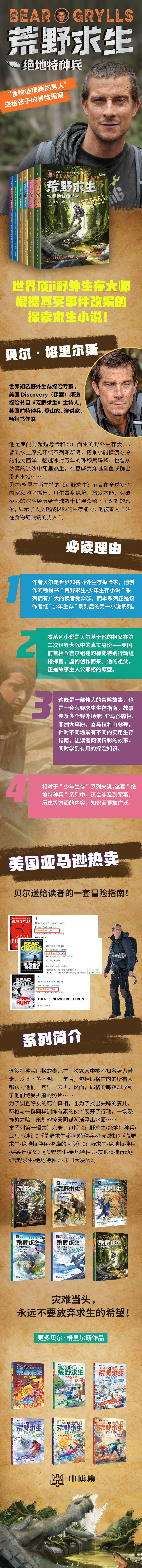 贝尔·格里尔斯,野外生存探险专家,美国Discovery(探索)频道探险节目《荒野求生》主持人,英国前特种兵、登山家、演讲家、畅销书作家。他是专门为超越危险和死亡而生的野外生存大师,曾乘水上摩托环绕不列颠群岛,搭乘小船横越冰冷的北大西洋,翻越冰封万年的珠穆朗玛峰;也曾从沙漠的流沙中死里逃生,在夏威夷穿越鲨鱼成群出没的水域,在野外寻找蛆虫充饥而得以存活…… 贝尔主持的节目《荒野求生》在全球170多个国家和地区播出,他置身绝境时激发本能、突破极限的探险经历给全球数十亿观众留下了深刻的印象,显示了人类挑战极限的生存能力。因其在节目中食用的东西太过惊人,他被誉为“站在食物链顶端的男人”。