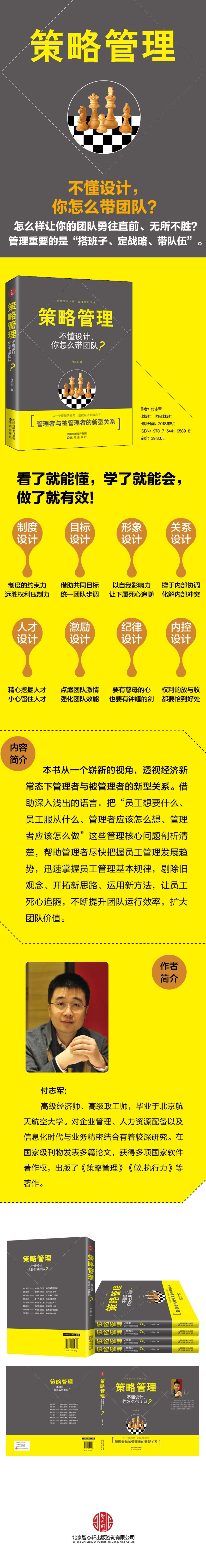 付志军:高级经济师、高级政工师,毕业于北京航天航空大学。对企业管理、人力资源配备以及信息化时代与业务精密结合有着较深研究。在国家级刊物发表多篇论文,获得多项国家软件著作权,出版了《策略管理》《做.执行力》等著作。