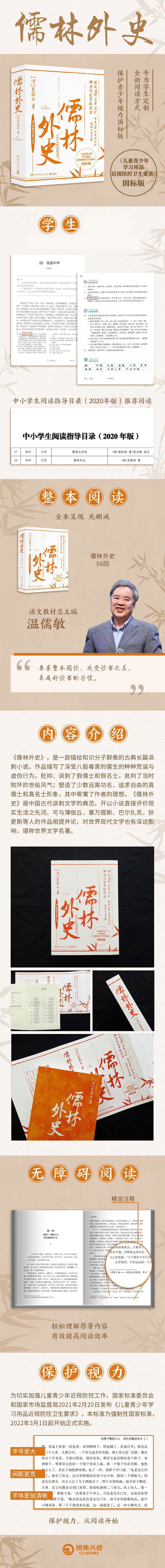 古典文学精装典藏系列:儒林外史 出版时间 2022-06-27T00:00 名家名作 77440 作者: [清]吴敬梓 出版社: 湖南文艺 原售价: 49.00 折扣价: 30.40 折扣购买: 古典文学精装典藏系列:儒林外史 ISBN: 9787540499853 作者简介 作者简介:吴敬梓(1701-1754) 清小说家。字敏轩,号粒民,晚号文木老人、秦淮寓客,安徽全椒人。雍正诸生。早年生活豪放,后家业衰落,移居江宁。乾隆初荐举博学鸿词,托病不赴,穷困以终。工诗词散文,尤以长篇小说《儒林外史》成就最高。又有《文木山房集》、《文木山房诗说》等。 内容简介 上一篇:水浒传(上下百家精评本)(精)下一篇:犯罪嫌疑人(第七届鲁迅文学奖获奖者小说精选集)