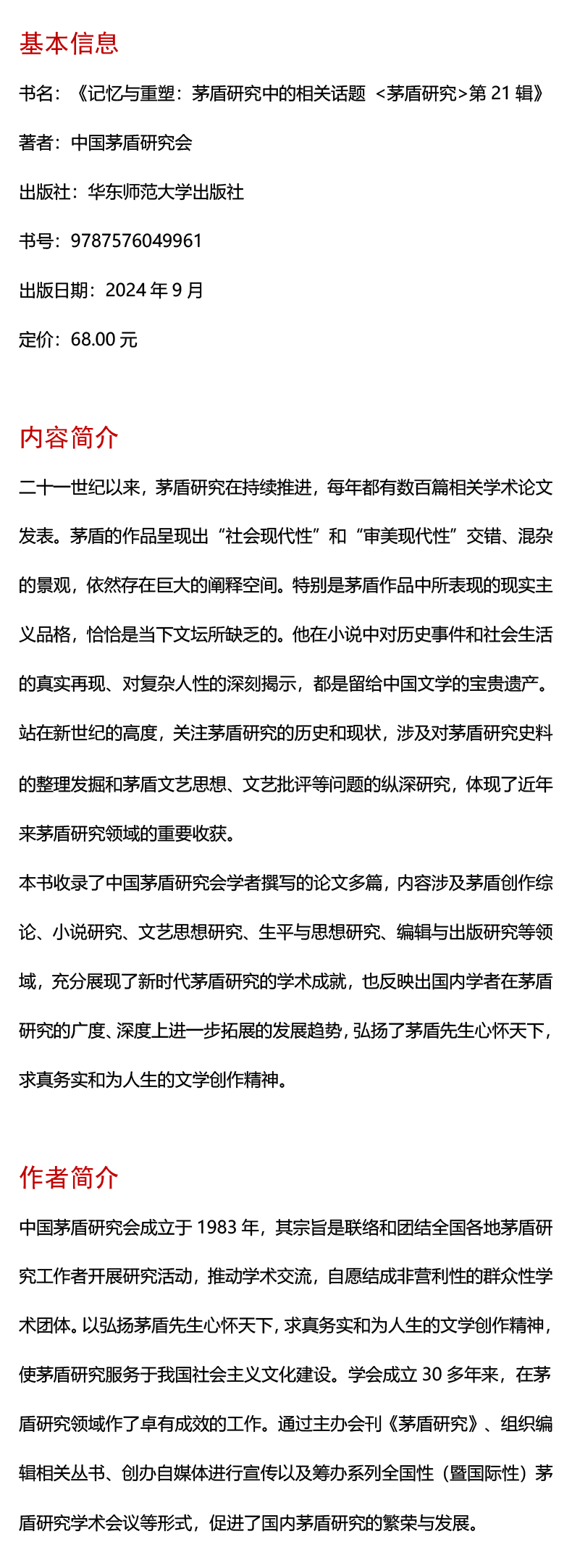 折扣购买: 记忆与重塑:茅盾研究中的相关话题 《茅盾研究》第21辑
