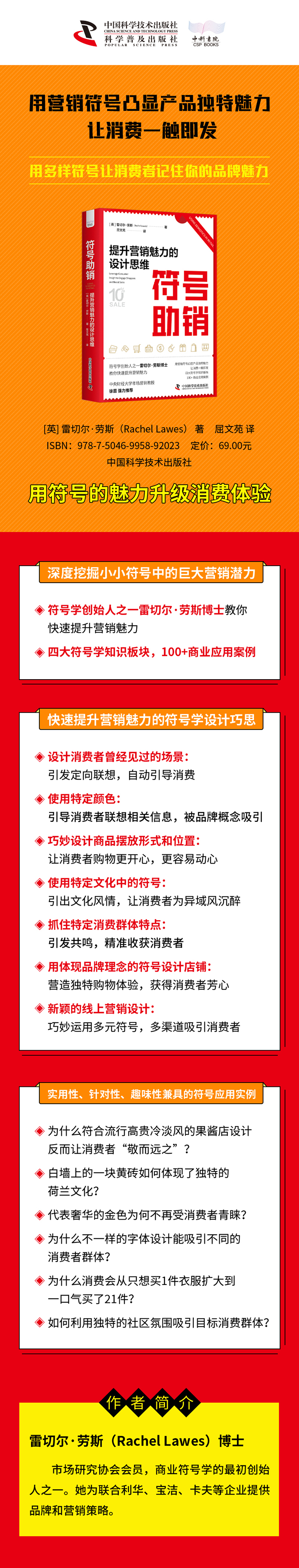 亲爱的读者,现在你手上拿着的是一本内容丰富、好看、有格局的书。这本关于零售的书,在我第一本书《营销符号学》 (Using Semiotics in Marketing )的基础上,增加了一些有关零售、消费者行为以及符号学的新观点。这些新观点,我对它们很满意,也希望你能喜欢。但是我不得不承认,现在本书呈现的内容与我之前的设想不完全一致,发生了一些变化。现在我想告诉你在我写作的时候发生的真实故事。 在我最初的设想中,本书应该是实用技能占主体的一本书, 因为营销人都喜欢有实用的建议和精练的语言的书。在这类书中,你能知道实体店铺(包括电商平台)、固定设施甚至包装上应该使用哪种标志、符号。这样的书对于读者来说很实用,当然现在本书里面也都包含了这些内容。我认为本书是通俗易懂的, 因为我有 20 年的相关从业经验,对于这个主题的研究已经非常深入了。 但是当我写本书写到一半的时候,许多事情已经悄悄改变了。 我对购物的认知变了 我不再认为购物仅仅是“在超市买袜子”“上网给孩子买玩具”“在晚餐时间订比萨”这样的行为。我开始意识到购物行为可能是人们获得“物品”的首要方式。这从人类学角度来说很有趣,因为在零售成为主要获取物品的方式之前,历史上的人类一度通过打猎、采集、制作、交换等行为来获取物品。而现在,很大程度上来说,我们是通过零售的方式获得食物、日用品和其他物品的。 也许你会问,这有什么关系呢?有关系,因为除了让我们吃饱、穿暖、开心以外,物品还有其他功能。它能告诉你“你是谁”“你的身份是什么”。它能向别人传递信息,让你触入某些地方和社会圈层。比如到公共游泳池要穿泳衣,合适的领带或手提包能让你交到某些相同品位的朋友。更重要的是,囤积物品能让你有安全感。这听起来有点让人觉得天真,但是在英国确实是这样的。从历史或文化角度来看,英国人非常执着于买房子。如果买不到房子,他们会十分郁闷,这是一个普遍现象。此外,在新冠疫情期间,在我的国家,大家都开始囤积物品,比如卫生纸、酒精等,因为拥有物品能给人带来安全感。这种安全感可以通过零售行为获得。这对于零售商和营销人员来说是巨大的机会,当然也是沉甸甸的责任——除了对品牌的介绍和品牌内涵的思考, 这也让我对本书整体的内容有了更深层次的思考。 零售业变了 当然,零售行业一直在变化。写本书时,我特意放慢其他工作的节奏,好让自己能抽空来完成这本书的写作。在此之前,我因为陷在客户项目的细节中而无法跳出来看到整个零售行业的大格局。一方面,我希望能够告诉读者,如何拍摄一个好的产品开箱视频或者用数码设备拍摄好的产品图片。另一方面,我也希望能告诉读者一些简单的事实,比如:谷歌在开发什么新的数码产品,脸书[Facebook,现改名为元宇宙(Meta)]近期的目标是什么,中国最火的商业模式与西方的有何不同。但是我最想让你花时间去了解的是:这些事实和理念是如何让我们看到精彩的人类社会和技术变革的。 符号学不仅仅是在收集材料后将它们拼凑起来。当你了解整体情况后,我们的工作才刚刚开始。这时候的挑战是如何利用一系列独特的符号学问题来检验情况并将符号学用到极致。设置这些问题的目的就是要鼓励研究人员勇于批判现时观点,不管这些观点是否已被大众认可。它要求研究者要提些深层次的问题,比如是否存在其他选择,给老百姓的好处和让其付出的代价,变革或者保持现状时谁会获益等。 符号学对我启发很大,让我对营销有了许多新看法。本书里随处贯穿着这些新理念。变化从未停止,也许朝着好的方面,也许朝着坏的方面。 编辑推荐: 1、深度挖掘小小符号中的巨大营销潜力 符号学创始人之一雷切尔·劳斯博士教你快速提升营销魅力 四大符号学知识板块,100+商业应用案例 2、快速提升营销魅力的符号学设计巧思 设计消费者曾经见过的场景:引发定向联想,自动引导消费 使用特定颜色:引导消费者联想相关信息,被品牌概念吸引 巧妙设计商品摆放形式和位置:让消费者购物更开心,更容易动心 使用特定文化中的符号:引出文化风情,让消费者为异域风沉醉 抓住特定消费群体特点:引发共鸣,精准收获消费者 用体现品牌理念的符号设计店铺:营造独特购物体验,获得消费者芳心 新颖的线上营销设计:巧妙运用多元符号,多渠道吸引消费者 3、实用性、针对性、趣味性兼具的符号应用实例 为什么符合流行高贵冷淡风的果酱店设计反而让消费者“敬而远之”? 白墙上的一块黄砖如何体现了独特的荷兰文化? 代表奢华的金色为何不再受消费者青睐? 为什么不一样的字体设计能吸引不同的消费者群体? 为什么消费会从只想买1件衣服扩大到一口气买了21件? 如何利用独特的社区氛围吸引目标消费群体?