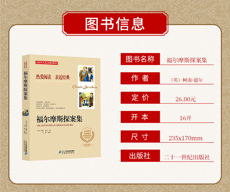 福尔摩斯探案集 出版时间 2017-05-01T00:00 侦探冒险 54338 作者: (英)柯南·道尔 出版社: 二十一世纪 原售价: 26.00 折扣价: 13.00 折扣购买: 福尔摩斯探案集 ISBN: 9787556823819 作者简介 内容简介 上一篇:格列佛游记(9年级)/部编版语文教材配套阅读名著书系下一篇:宇宙龙骑士(8绝路英雄的末日)/冒险王系列