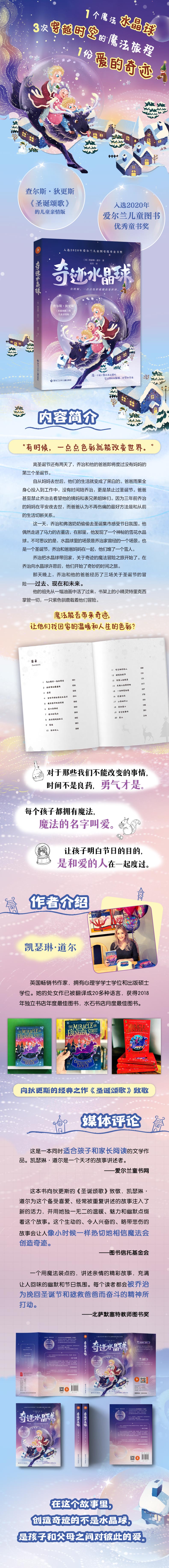 "★ 入选2020年爱尔兰儿童图书优秀童书奖 ★ 一个魔法水晶球,三次穿越时空的魔法旅程,一份爱的奇迹。 ★ 查尔斯·狄更斯《圣诞颂歌》的儿童亲情版。向狄更斯的经典之作《圣诞颂歌》致敬。 借用《圣诞颂歌》经典的三段魔法之旅的方式,以更贴近孩子的方式给孩子展示经典的魅力。 ★ 给孩子的温情治愈魔法,给大人的珍惜生活解药。 对于儿童来说,亲人的离去是一件不知道如何面对如何处理的事情,这个故事用一种带有魔法的方式给了孩子一种处理方式。对于家长来说,生活中有太多的苦恼和困扰存在,每个人都会有出现负面情绪的时候,在这些时刻,如何平衡自己和对孩子的关注也很重要。 ★ 让孩子明白节日的目的,是和爱的人在一起度过。 无论中外节日,其意义应该是人和人之间情感连结的方式。节日不仅是仪式感、愉悦感,良好的节日体验和幸福感受,能让孩子成长得更自信、更乐观。 ★ 每个孩子都拥有魔法,魔法的名字叫爱。在这个故事里,创造奇迹的不是水晶球,是孩子和父母之间对彼此的爱。 ★ 对于那些我们不能改变的事情,时间不是良药,勇气才是。 亲人的离去是不可磨灭的伤痛,但是活着的亲人也是非常重要的。这个故事中乔治和爸爸的不同做法能让人明白,只有勇敢去面对,生活才会继续。"