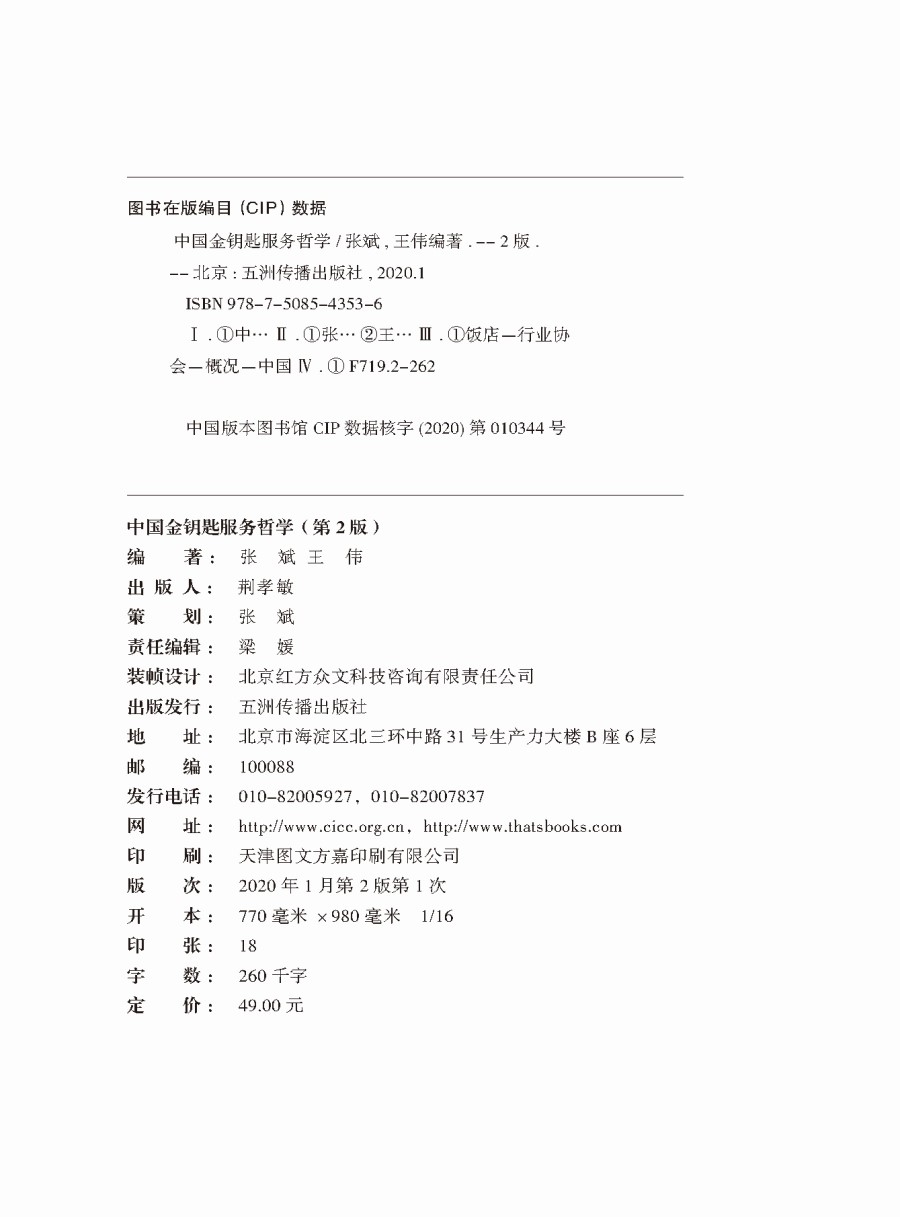 张斌,哲学博士,中国金钥匙服务理论的构建者,中国金钥匙组织首席教育顾问,曾任中国旅游出版社、旅游教育出版社。长期跟踪研究中国金钥匙发展,策划出版《中国服务 创意无限》《金钥匙品牌服务系列》《金钥匙服务学》等多种图书,图书,著有《中国金钥匙服务哲学》《休闲权利论》,在《新华文摘》《旅游学刊》《旅游科学》等多家国家核心期刊发表文章。 王伟,中国金钥匙首席培训导师,曾任厦门悦华酒店常务副总,厦门国际会展酒店总经理,厦门理工观光与酒店管理学院院长,鼓浪屿投资发展有限公司总经理。曾编写《金钥匙品牌服务系列》等图书。