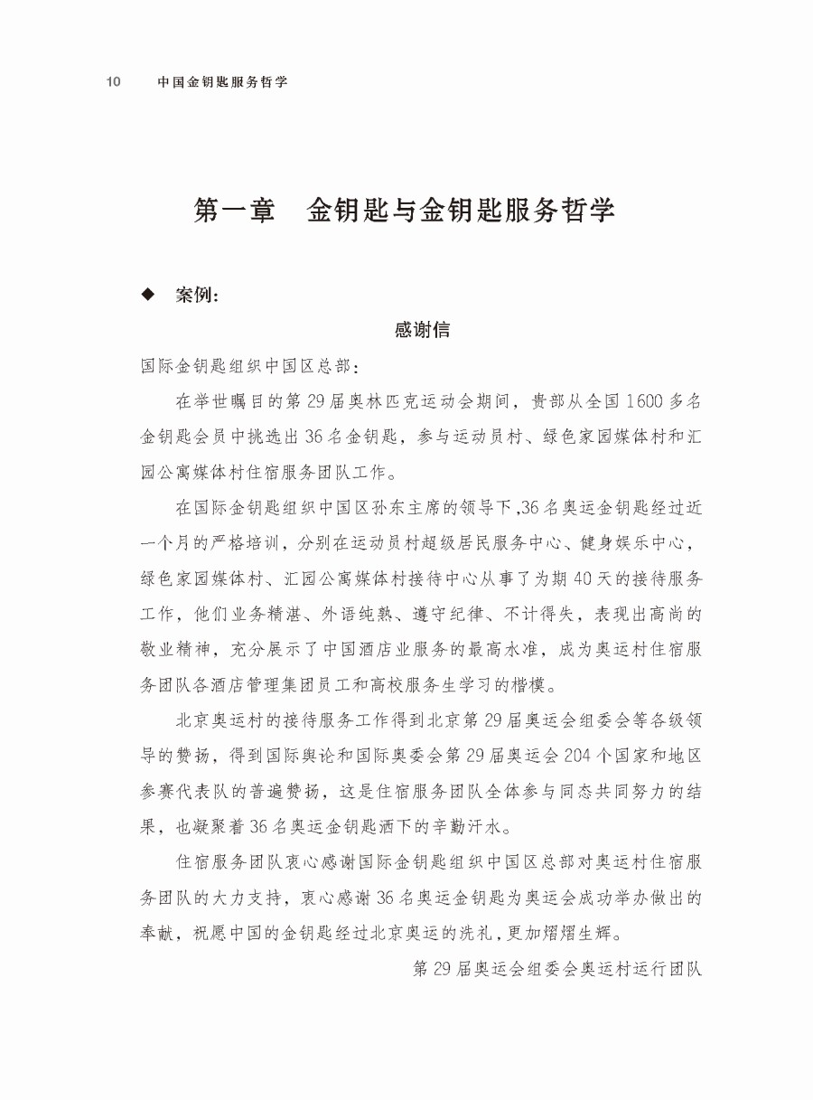 作为酒店行业高端服务品牌的金钥匙组织,在中国从创建到壮大,一路走来的发展足迹、机遇和挑战、发展现状,也是“中国服务”从无到有的过程。是这本书的主要阐述内容。作者通过梳理中国金钥匙的发展历程,结合案例,向读者详细介绍了什么是金钥匙,中国金钥匙的理论基础和实践经验,阐述中国金钥匙这一服务品牌的内涵和特质。作为再版,本书在原书基础上,对金钥匙品牌核心价值,做了进一步的哲学解析和补充,为金钥匙服务哲学向其他服务行业推广做了铺垫。