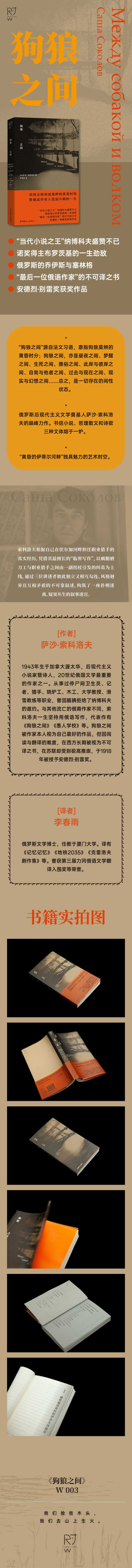 萨沙·索科洛夫 1943年生于加拿大渥太华,后现代主义小说家暨诗人,20世纪俄国文学最重要的作家之一。从事过停尸间卫生员、记者、猎手、烧炉工、木工、大学教授、滑雪教练等职业,曾因腼腆拒绝了纳博科夫的邀约。与其他流亡的俄裔作家不同,索科洛夫一生坚持用俄语写作,代表作有《狗狼之间》《愚人学校》等。狗狼之间被作家本人视为自己最好的作品,但因阅读与翻译的难度,在西方长期被视为不可译之书,在苏联却受到极高推崇,于1918年被授予安德烈·别雷奖。 译者简介: 李春雨 俄罗斯文学博士,任教于厦门大学。译有《记忆记忆》《地铁2035》《克雷洛夫剧作集》等。曾获第三届力冈俄语文学翻译入围奖等荣誉。